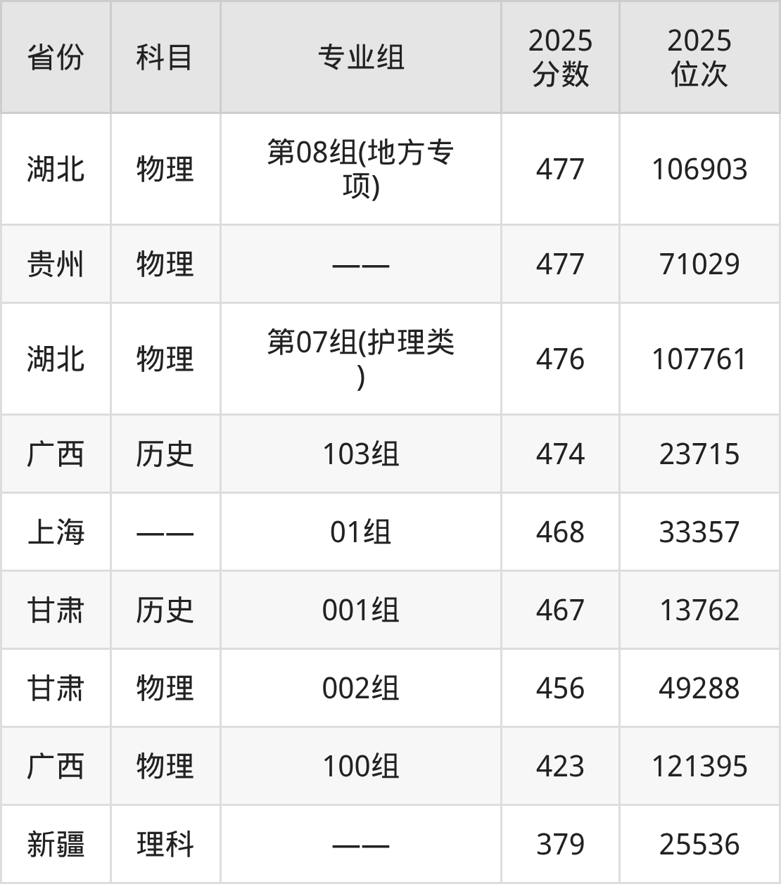 三、湖北医药学院2025年录取分数线