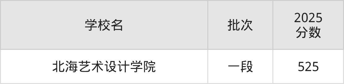 1、北海艺术设计学院(2025年525分)