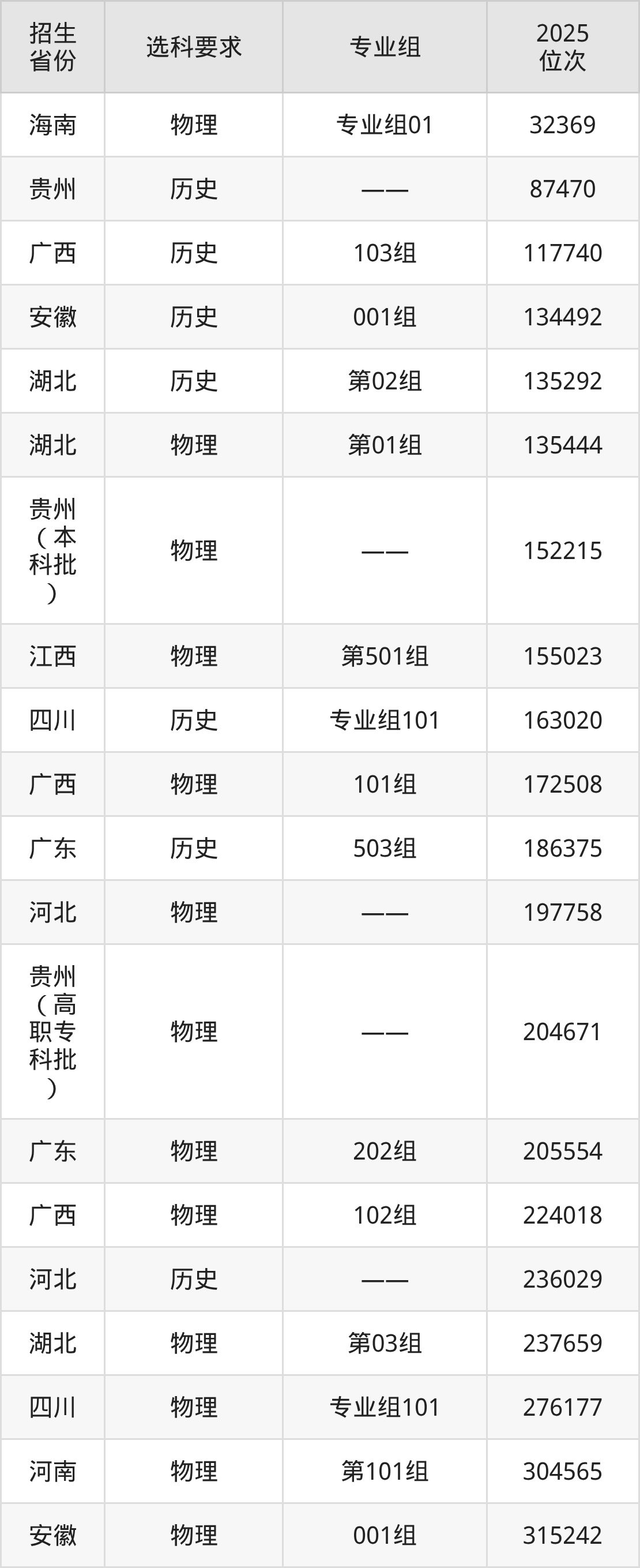 湖南软件职业技术大学2025年在全国各省的位次差异较大,最高位次是32369位(海南)、最低位次是397061位(广东物理类)。各省具体位次请看下图: