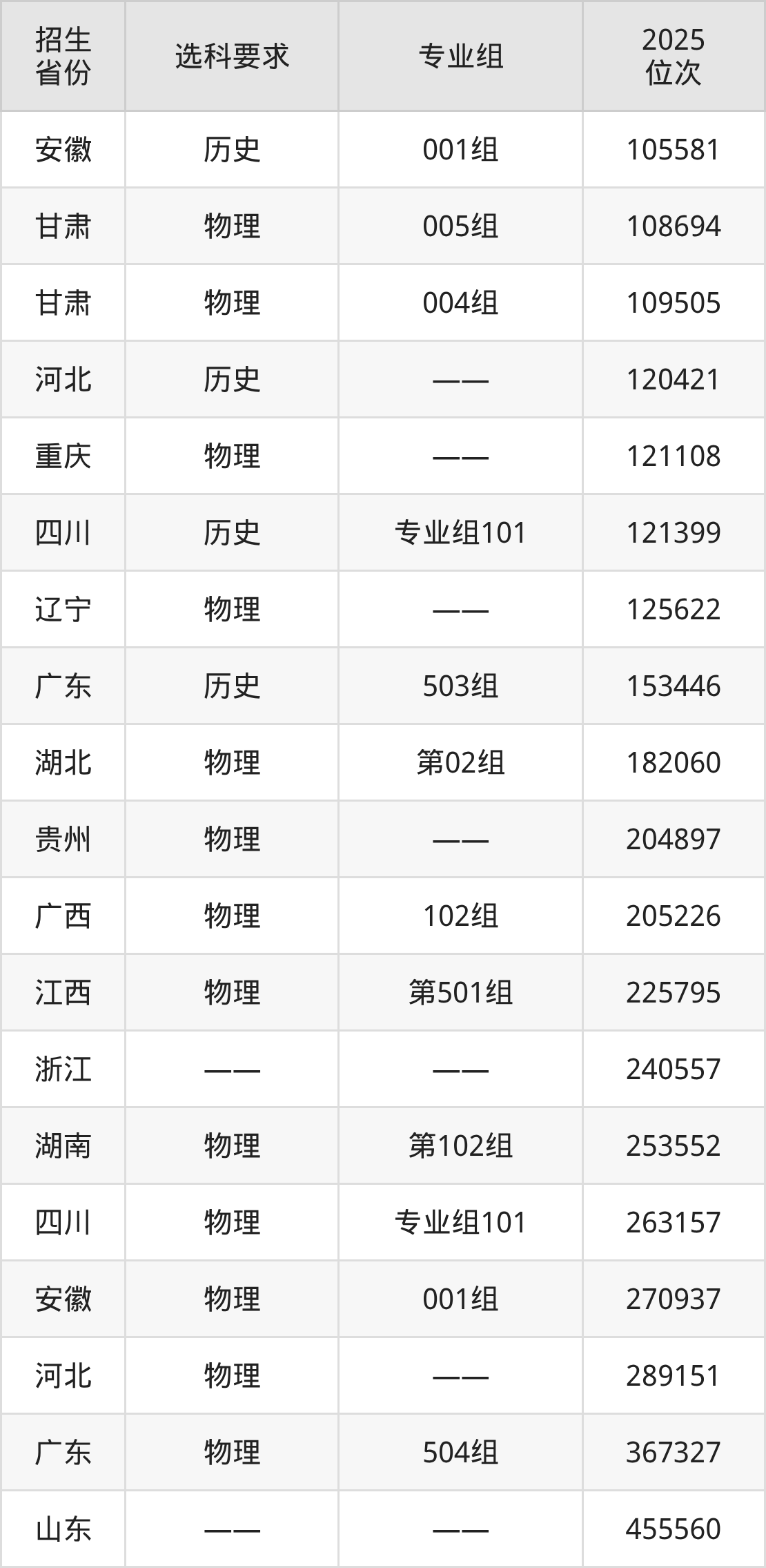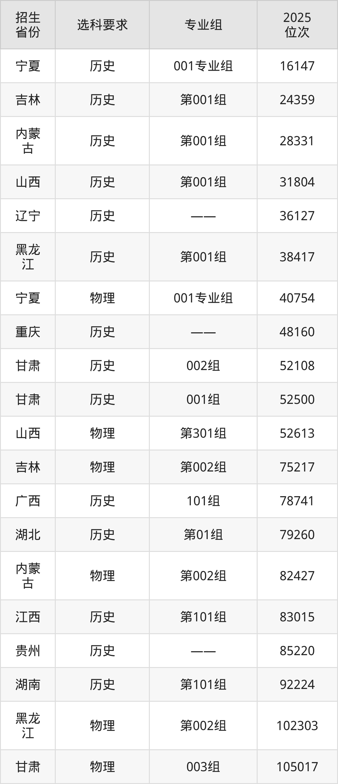 长沙环境保护职业技术学院2025年在全国各省的位次差异较大,最高位次是16147位(宁夏历史类)、最低位次是455560位(山东)。各省具体位次请看下图: