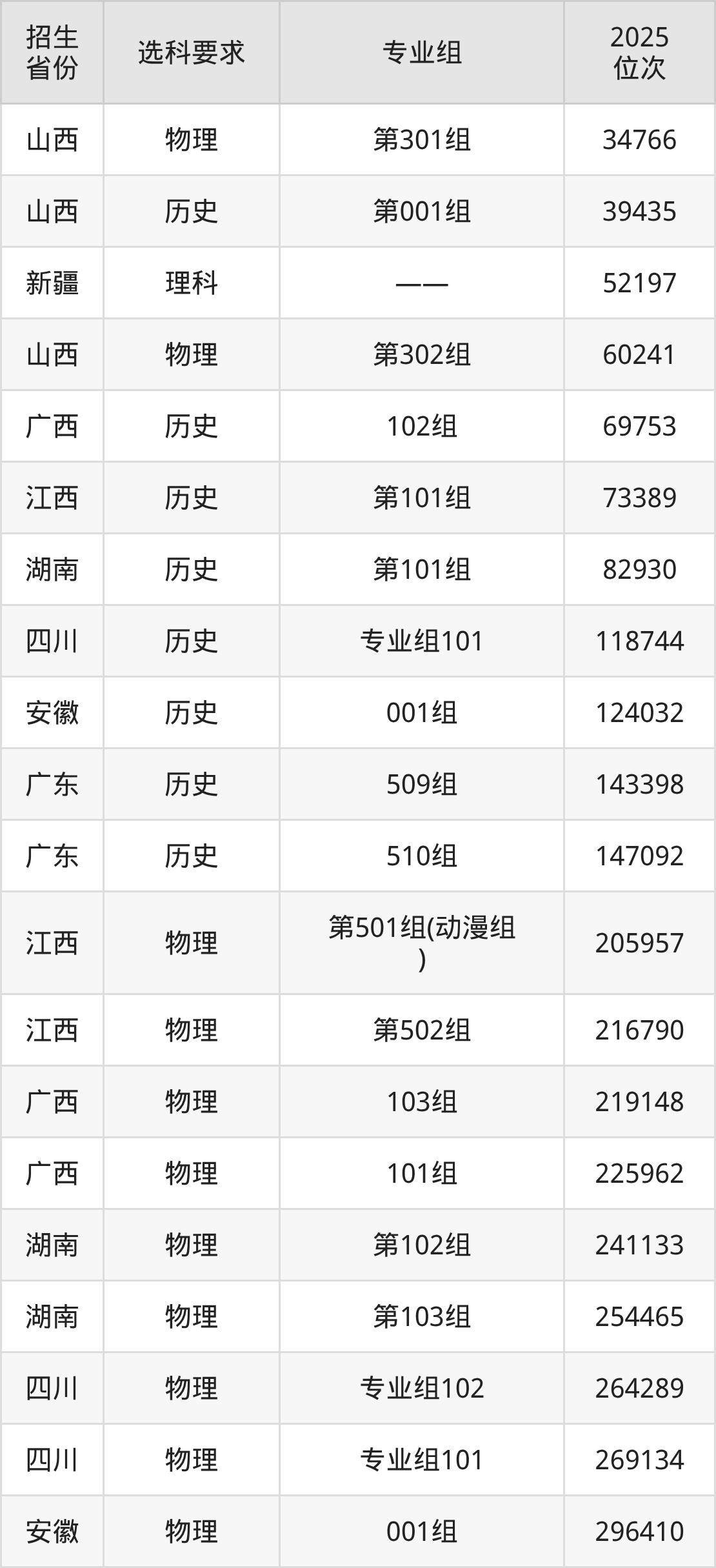 广东文艺职业学院2025年在全国各省的位次差异较大,最高位次是34766位(山西物理类)、最低位次是366857位(广东物理类)。各省具体位次请看下图:
