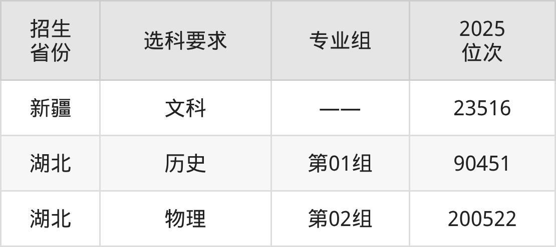 湖北艺术职业学院2025年在全国各省的位次差异较大,最高位次是23516位(新疆文科)、最低位次是200522位(湖北物理类)。各省具体位次请看下图: