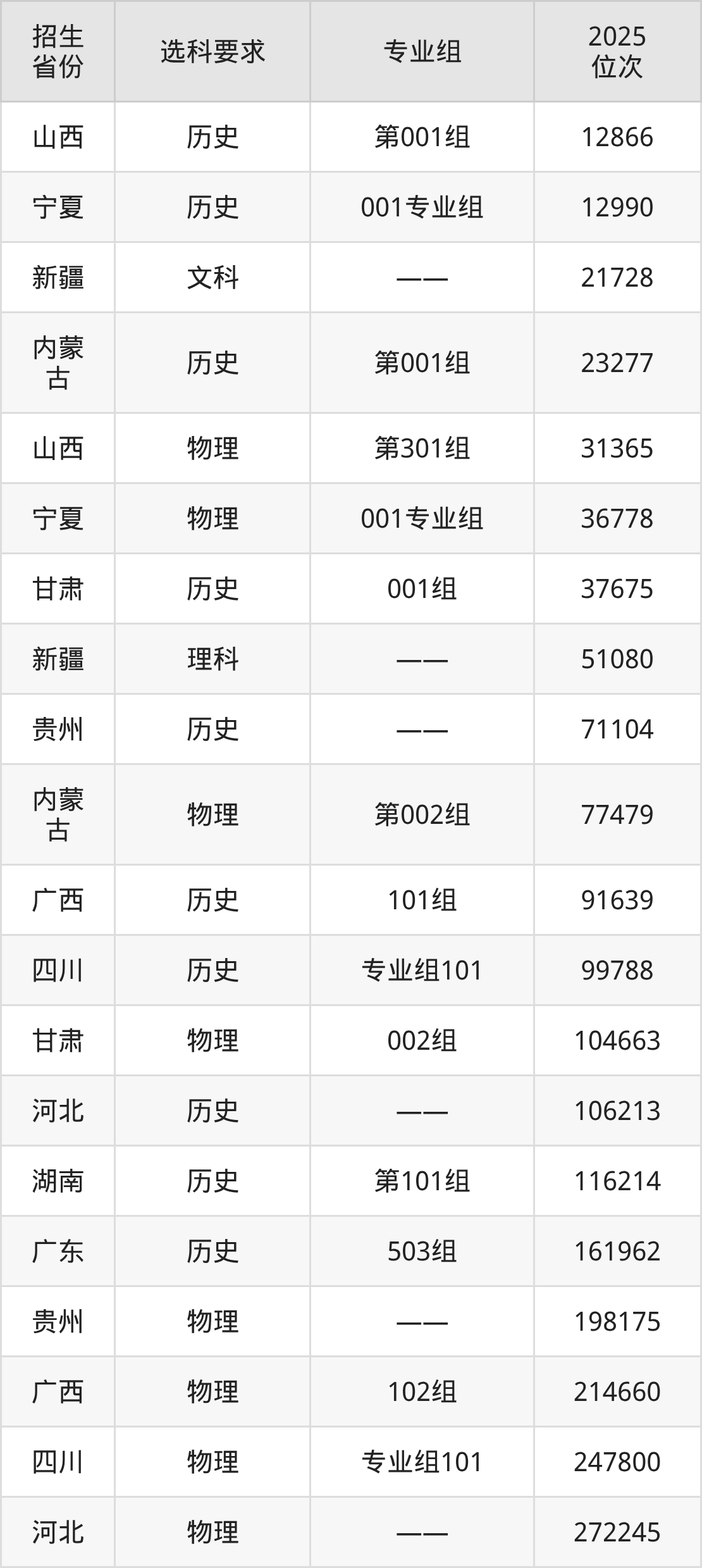 陕西青年职业学院2025年在全国各省的位次差异较大,最高位次是12866位(山西历史类)、最低位次是343749位(广东物理类)。各省具体位次请看下图: