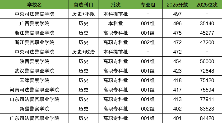 安徽历史类400到500分的警校名单: