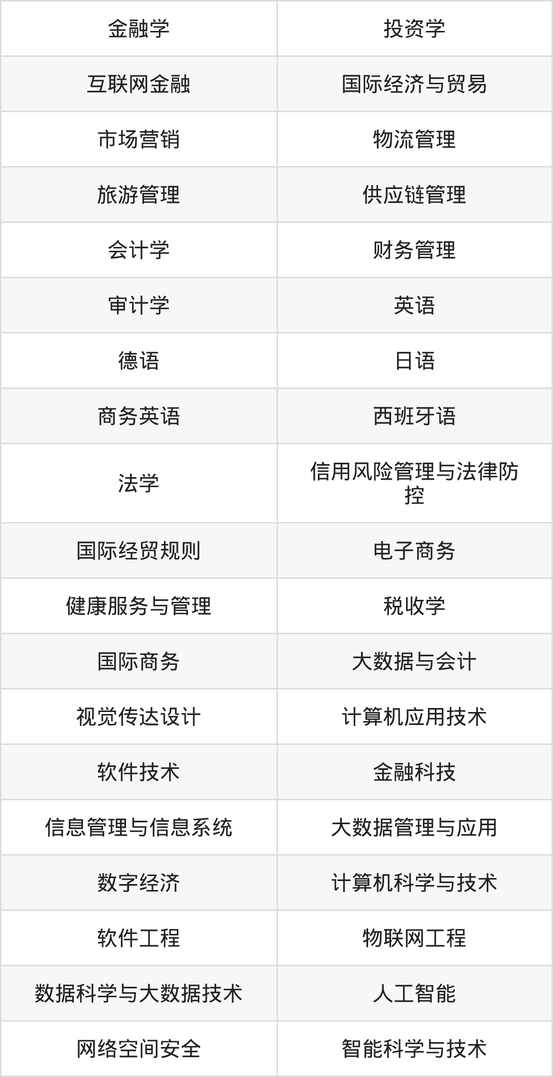 根据2025年广东高考招生计划可知,广州商学院招生专业包含金融学、投资学、互联网金融等,完整版名单如下。