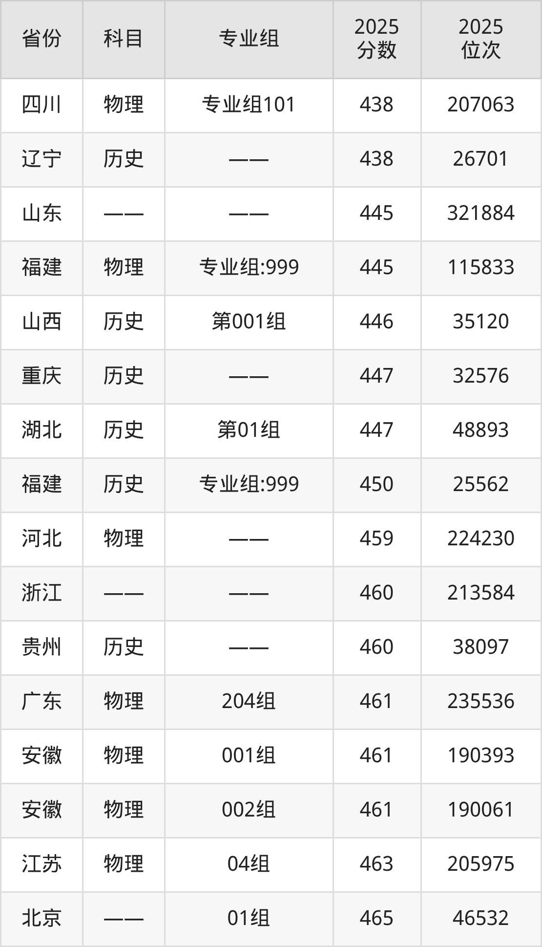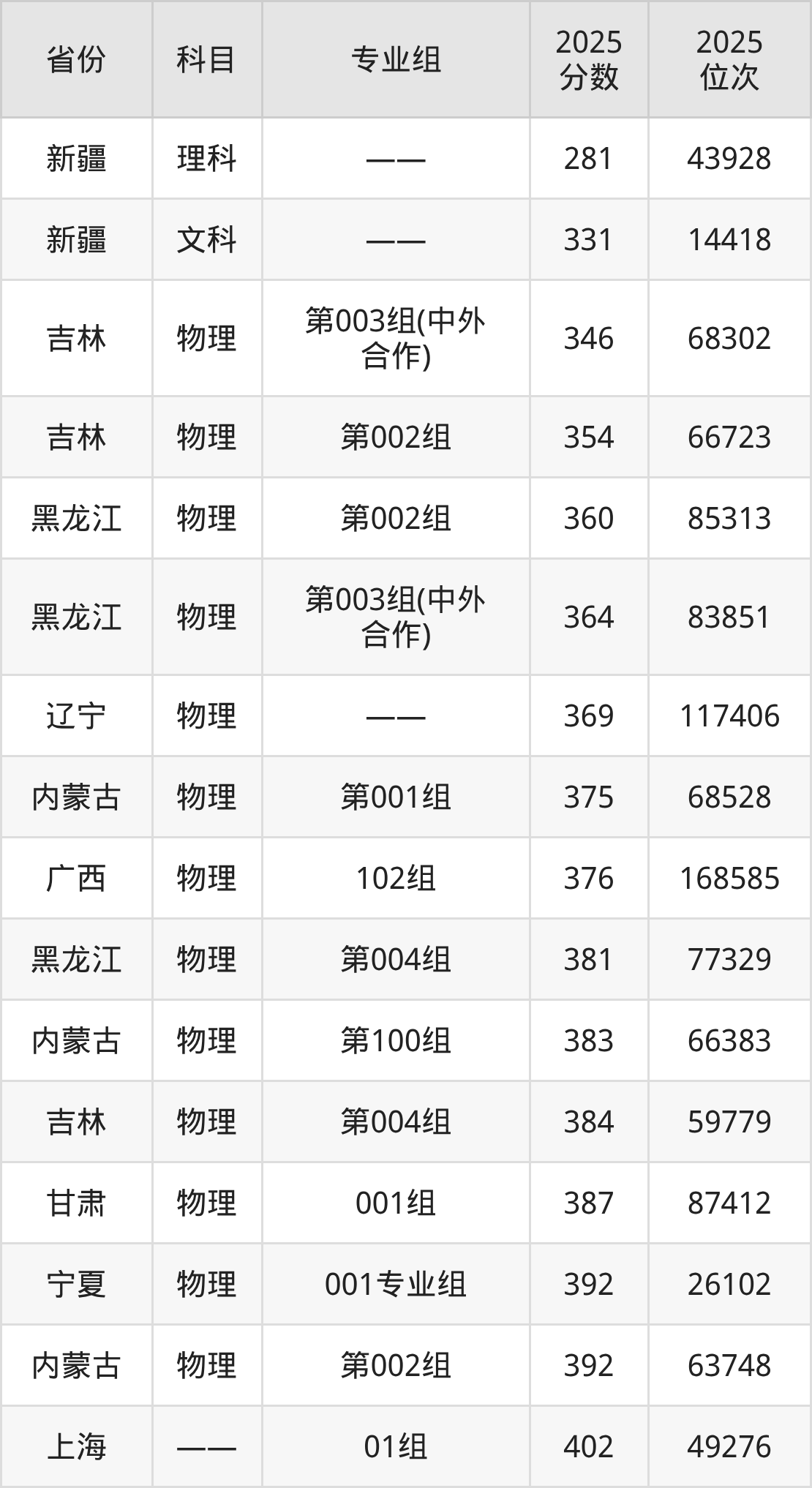 理科:2025年长春财经学院录取最低分是281分(新疆),对应的位次排名是43928名。
