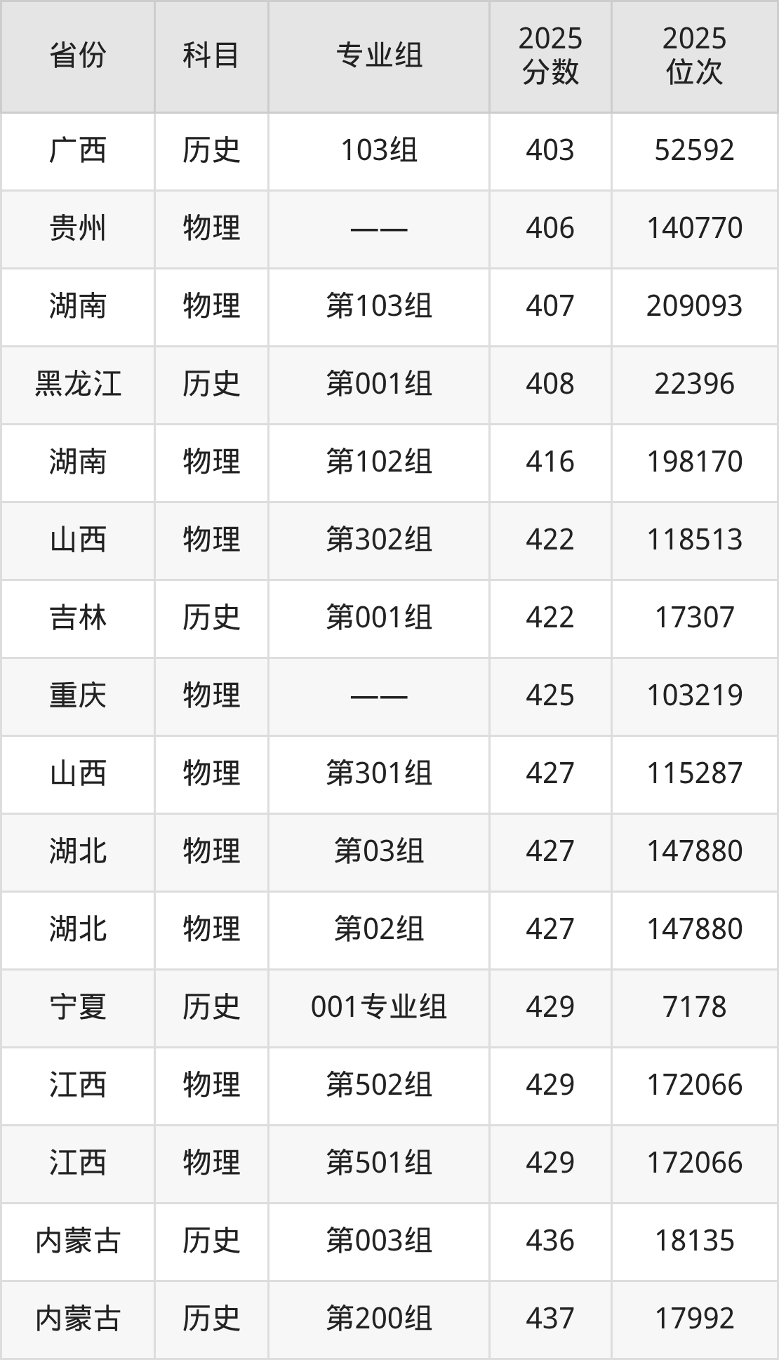 历史类:2025年长春财经学院录取最低分是403分(广西),对应的位次排名是52592名。