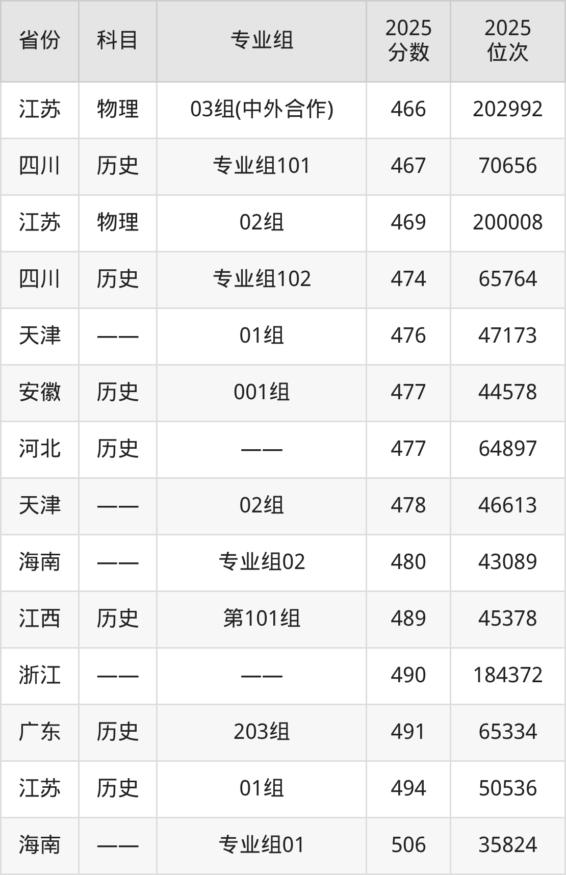 3+3地区:2025年长春财经学院录取最低分是402分(上海),对应的位次排名是49276名。
