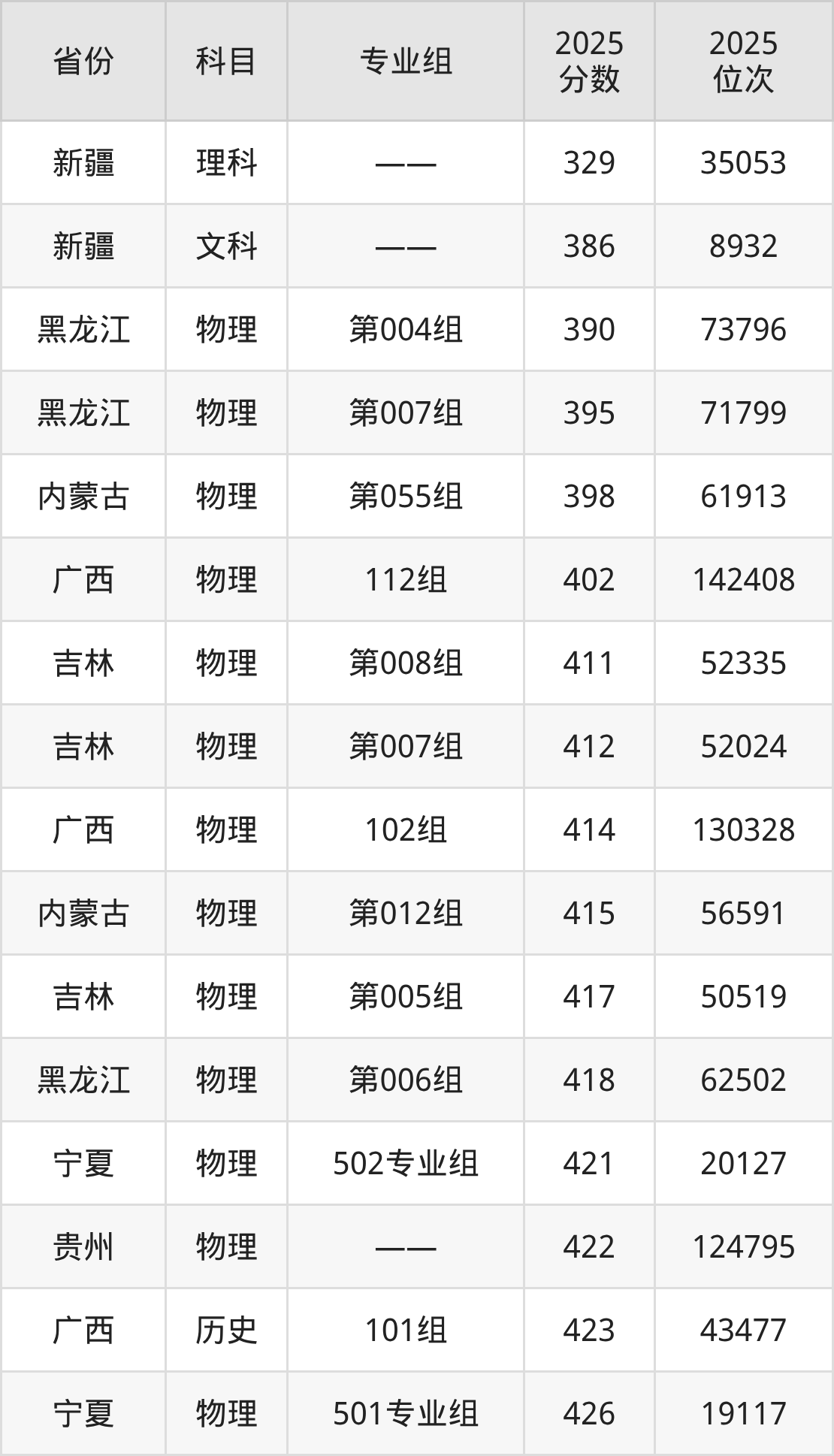 2025年内蒙古科技大学包头师范学院全国排名第460位,2025年录取分数线最低329分(位次35053)。本文将展示内蒙古科技大学包头师范学院在各省最低录取分数线汇总,供2026届想要报考该校的考生查阅。