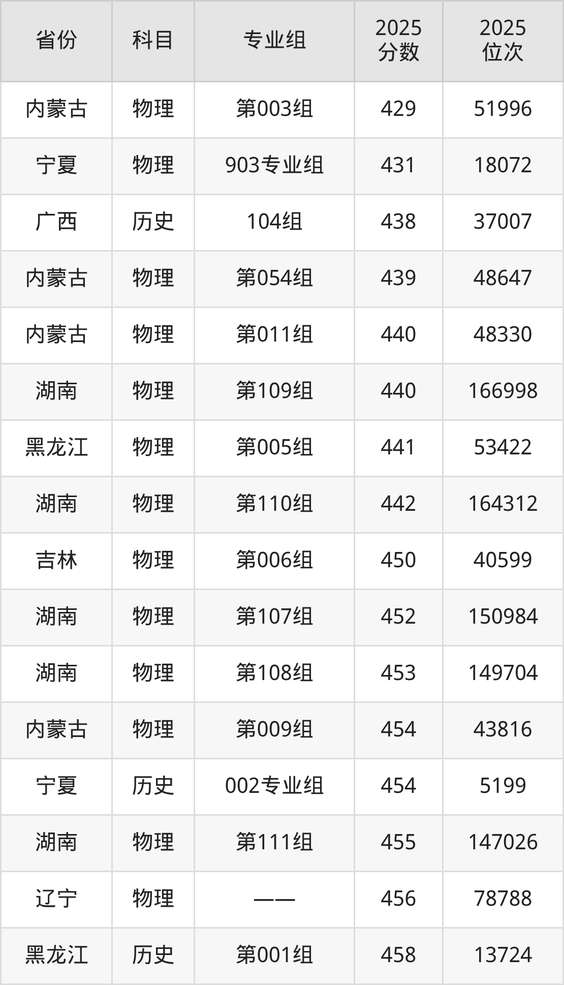 物理类:2025年内蒙古科技大学包头师范学院录取最低分是390分(黑龙江),对应的位次排名是73796名。