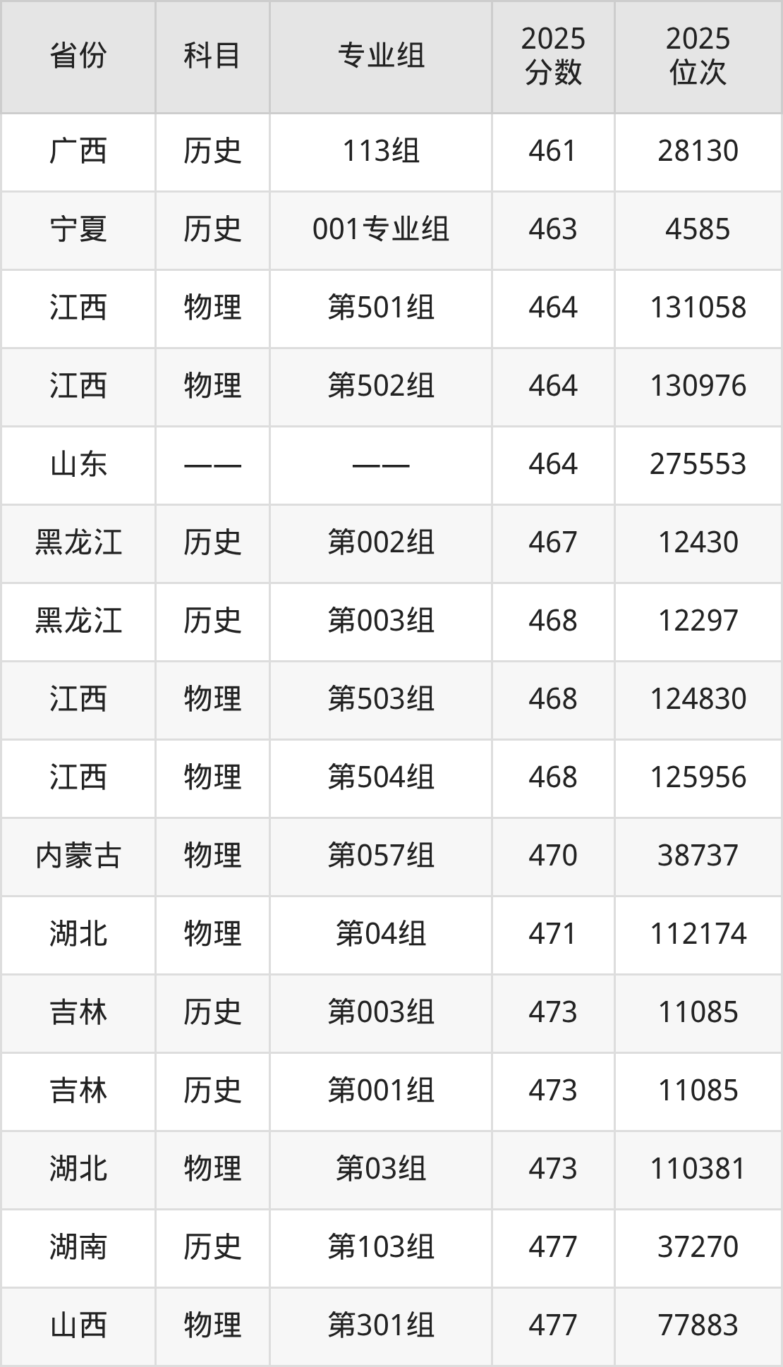 3+3地区:2025年内蒙古科技大学包头师范学院录取最低分是464分(山东),对应的位次排名是275553名。
