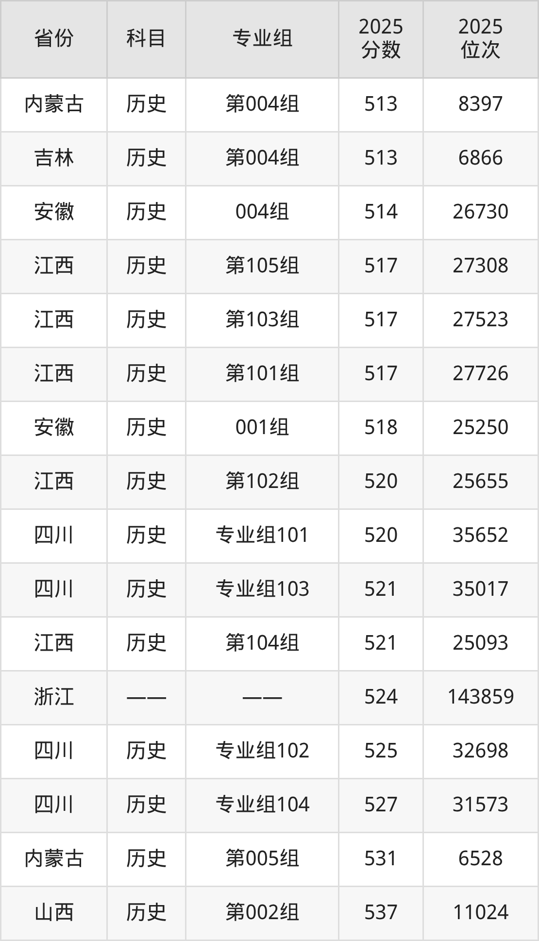 历史类:2025年内蒙古科技大学包头师范学院自治区内录取最低分是487分,对应的位次排名是11442名。建议:如果2026年排名超过11442名,那么被该校录取的概率较大。