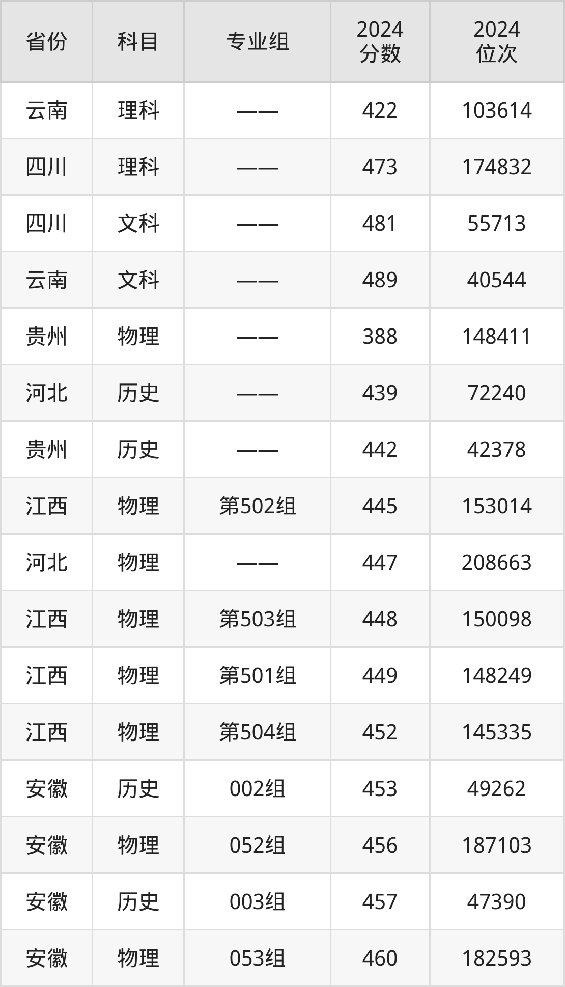 理科:2024年杭州职业技术学院录取最低分是422分(云南),对应的位次排名是103614名。