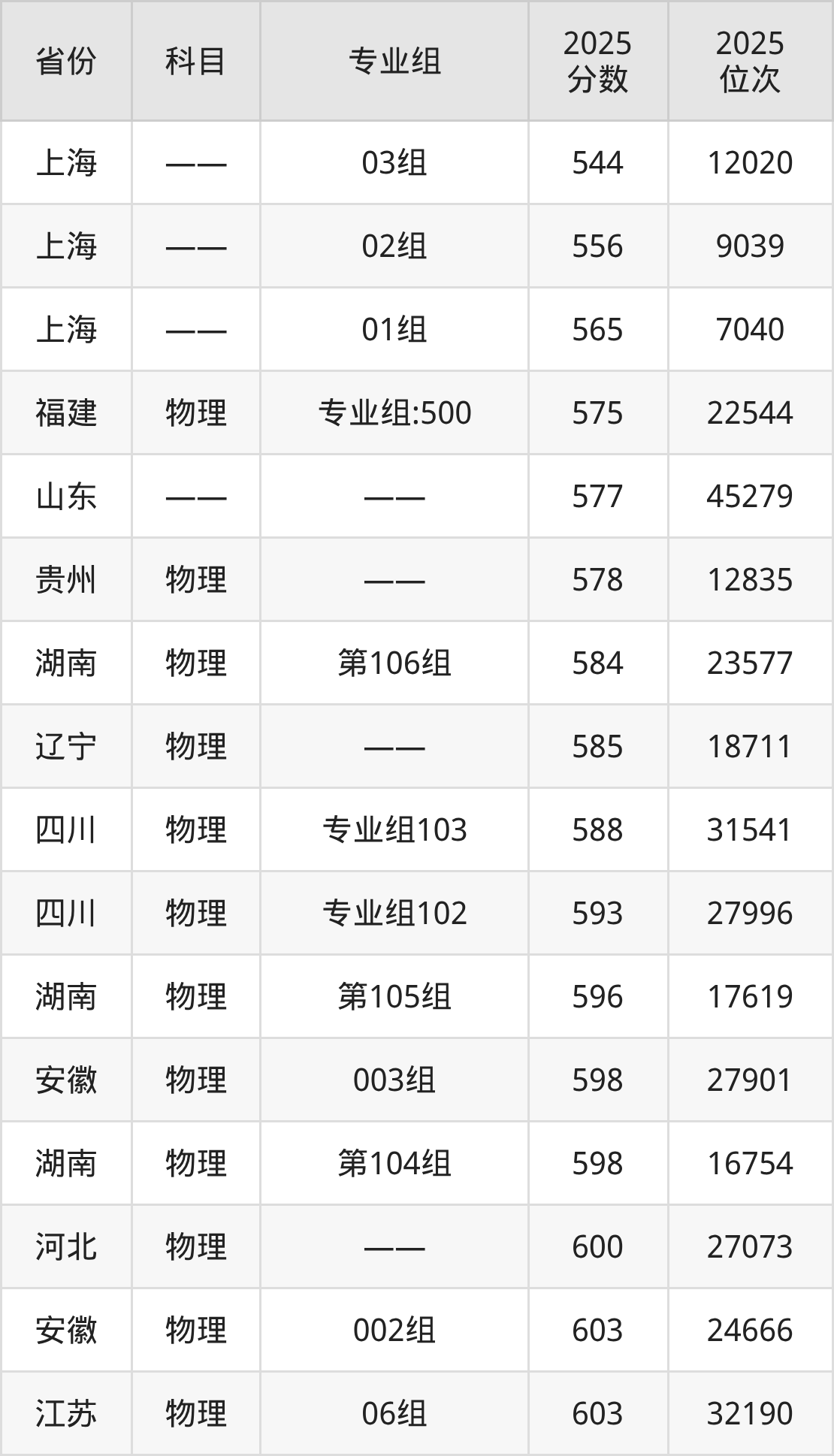 物理类:2025年海军军医大学录取最低分是575分(福建),对应的位次排名是22544名。