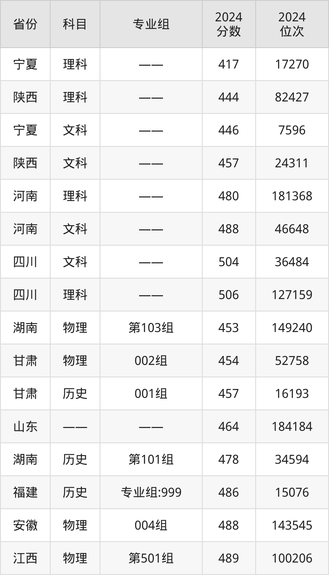 理科:2024年池州学院录取最低分是417分(宁夏),对应的位次排名是17270名。