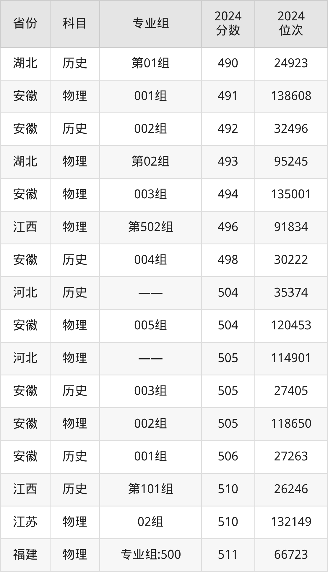 历史类:2024年池州学院省内录取最低分是492分,对应的位次排名是32496名。建议:如果2025年排名超过32496名,那么被该校录取的概率较大。