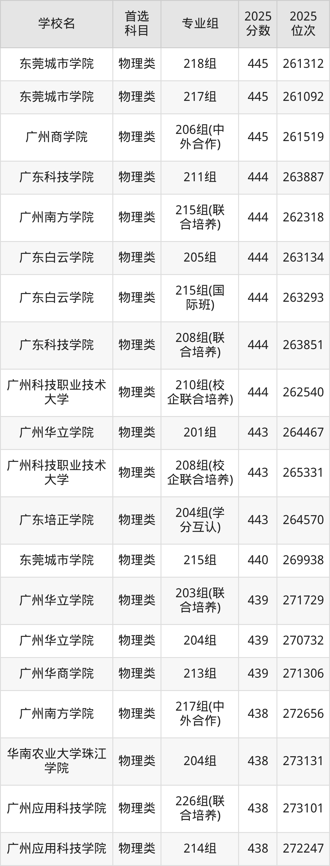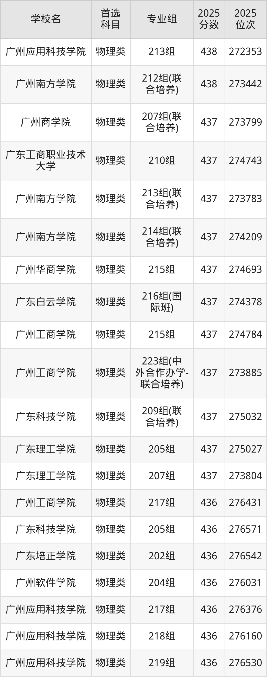 2025年广东民办本科最低录取分数线是436分,收分最低的学校为广州工商学院217组。