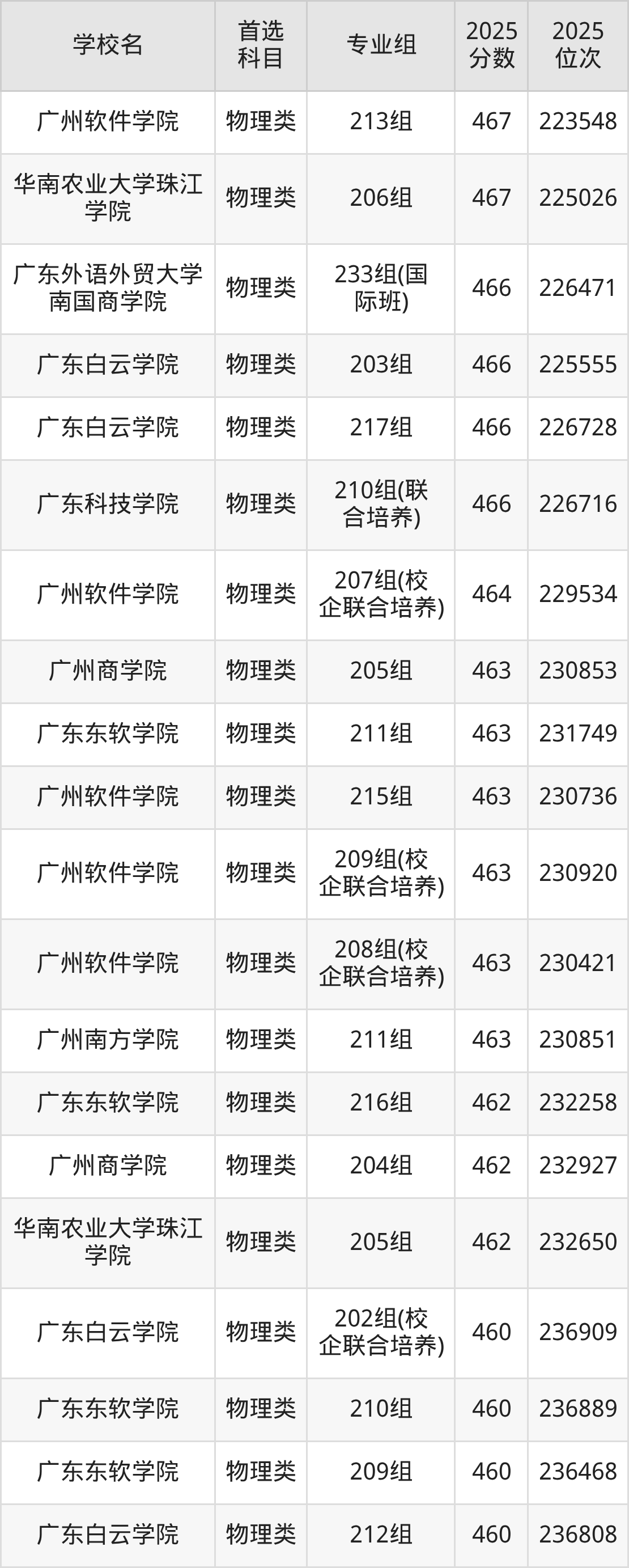 2025年广东民办本科最低录取分数线是464分,收分最低的学校为广东工商职业技术大学204组。