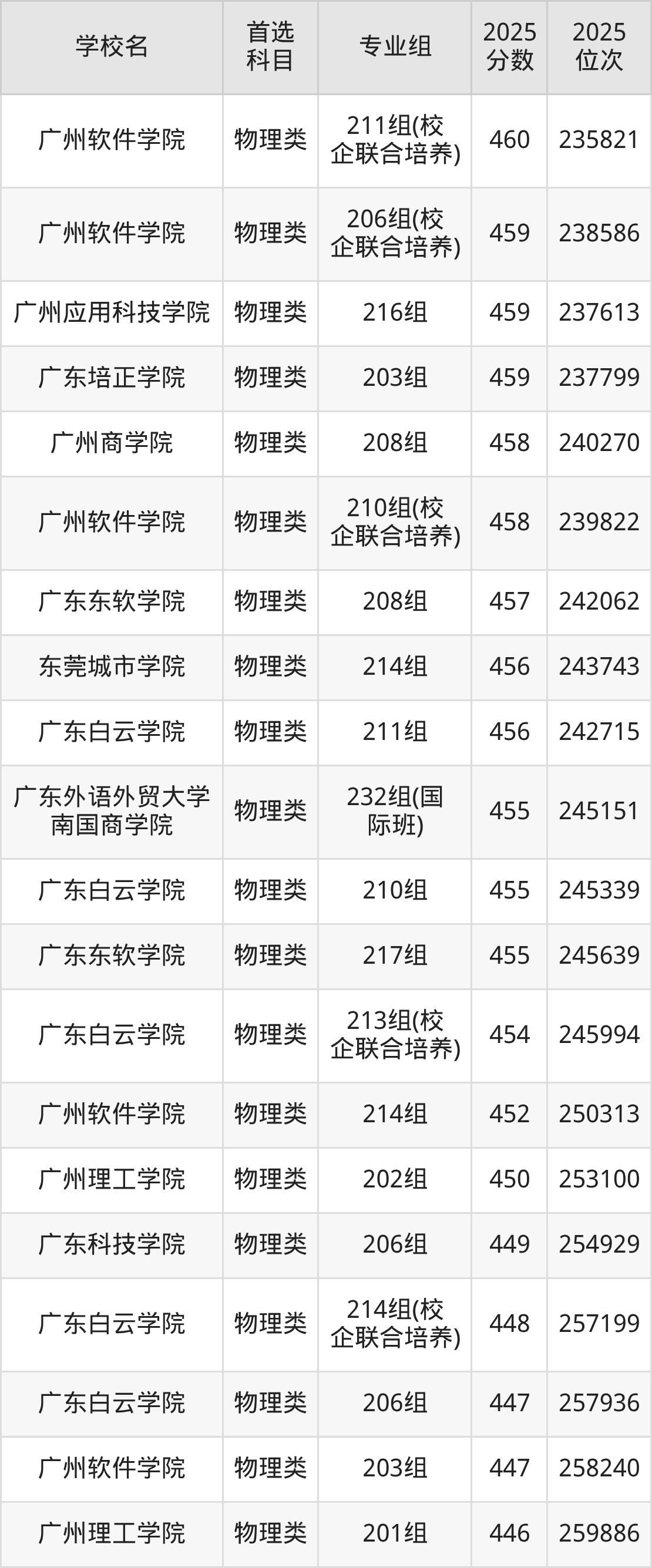 2025年广东省民办本科录取分数线一览表完整版,请查看: