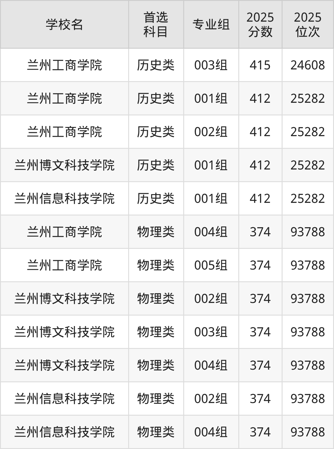 (2)兰州博文科技学院003专业组:374分、93788名;