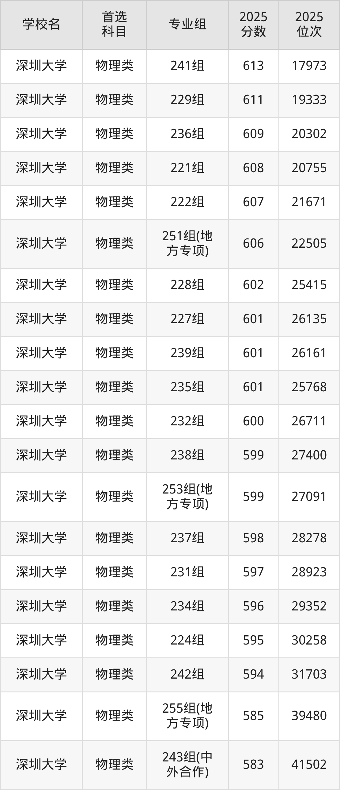 (5)深圳大学233组:625分、11801名;