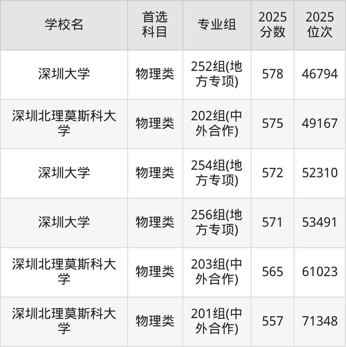 (1)深圳北理莫斯科大学202组(中外合作):575分、49167名;