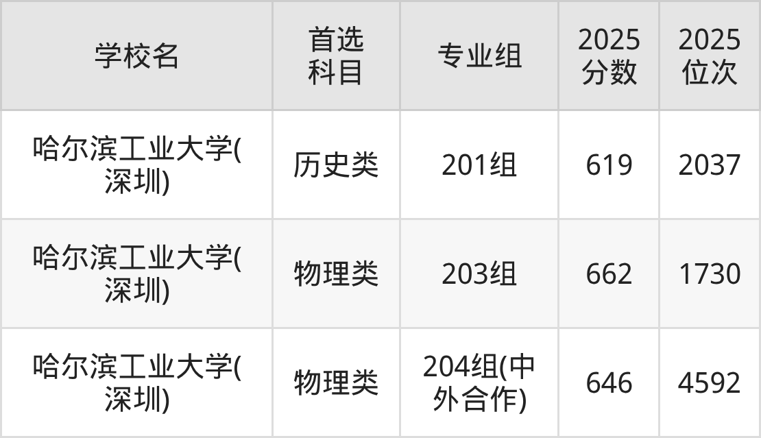 (2)哈尔滨工业大学(深圳)204组(中外合作):646分、4592名;