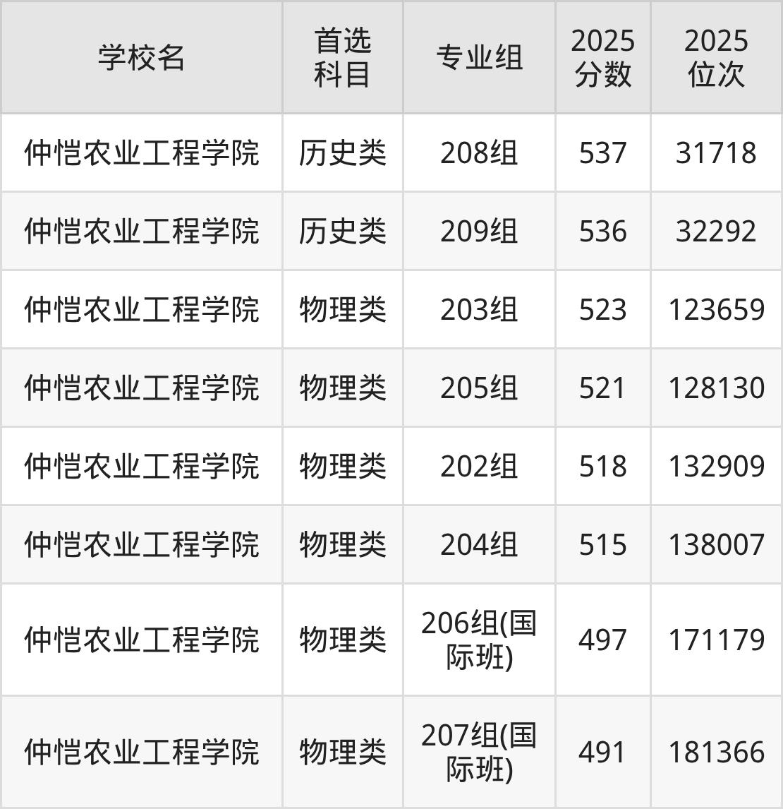 2025年广东二本农林大学最低录取分数线是491分,收分最低的学校为仲恺农业工程学院207组(国际班)。