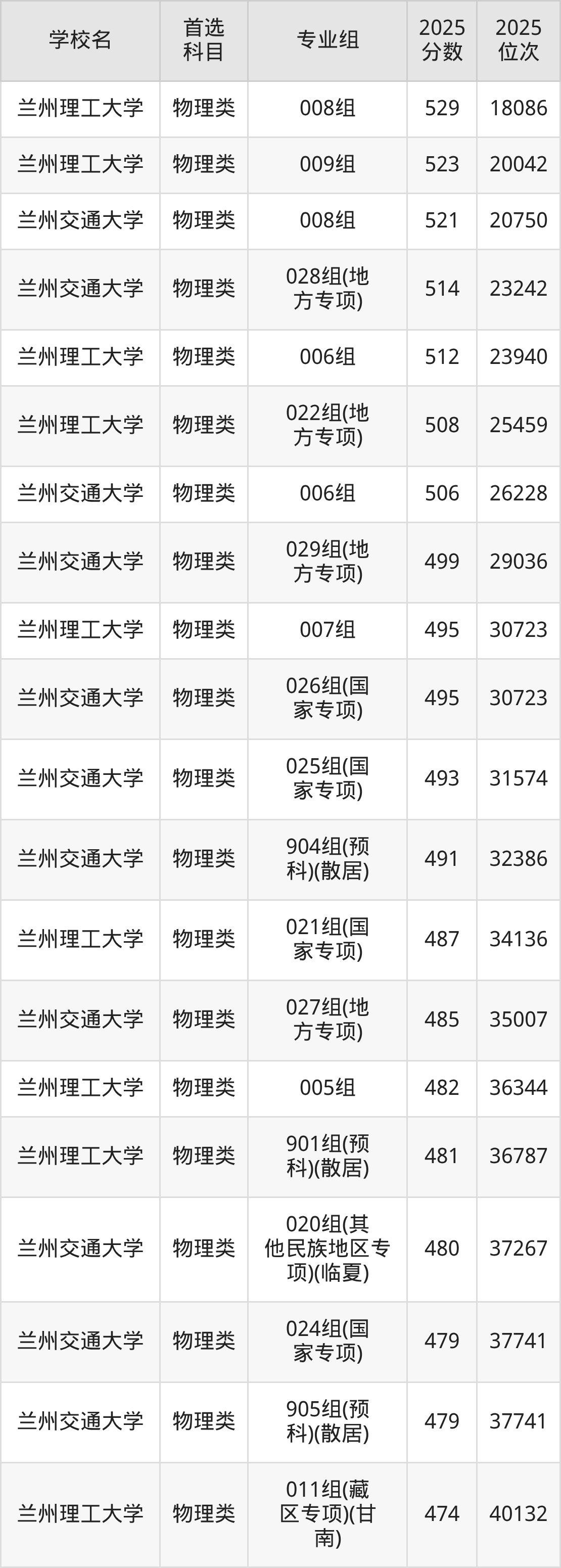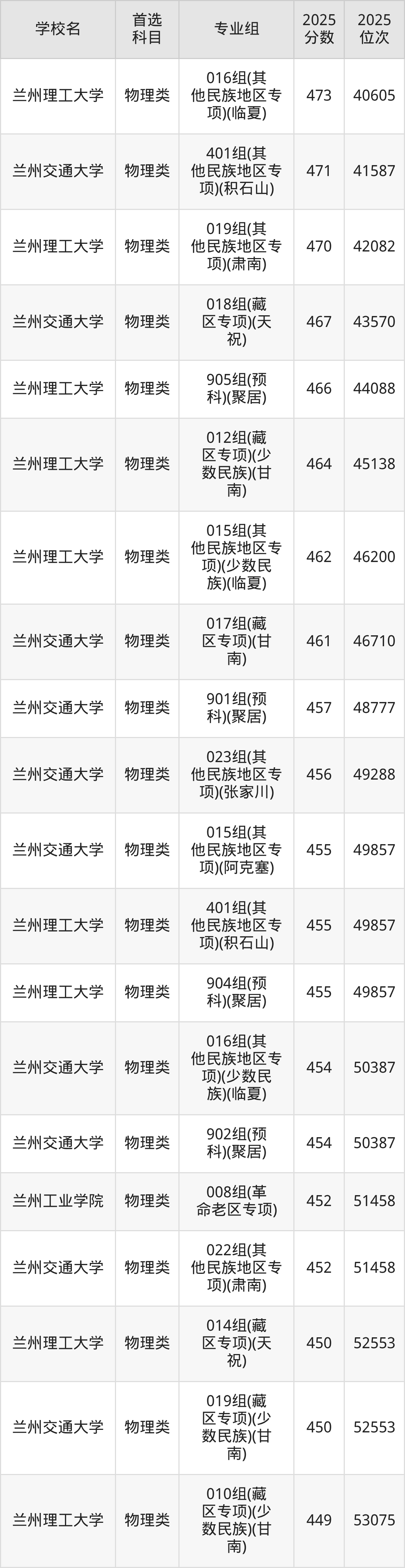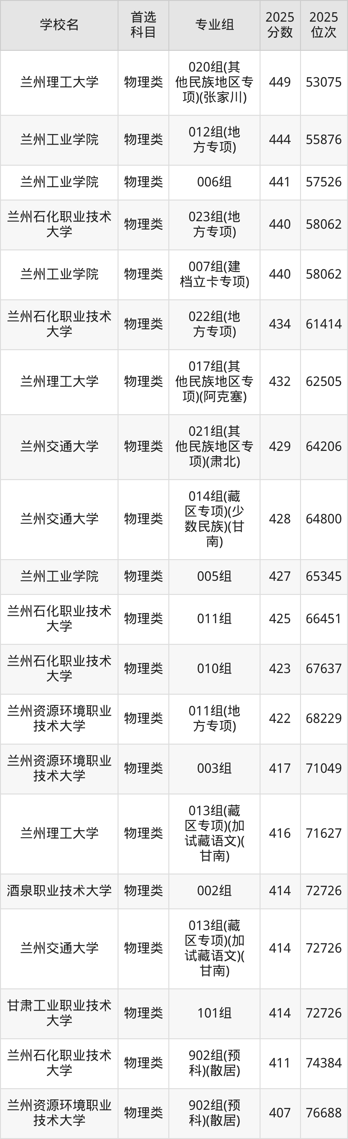 2025年甘肃省理工类大学录取分数线一览表完整版,请查看: