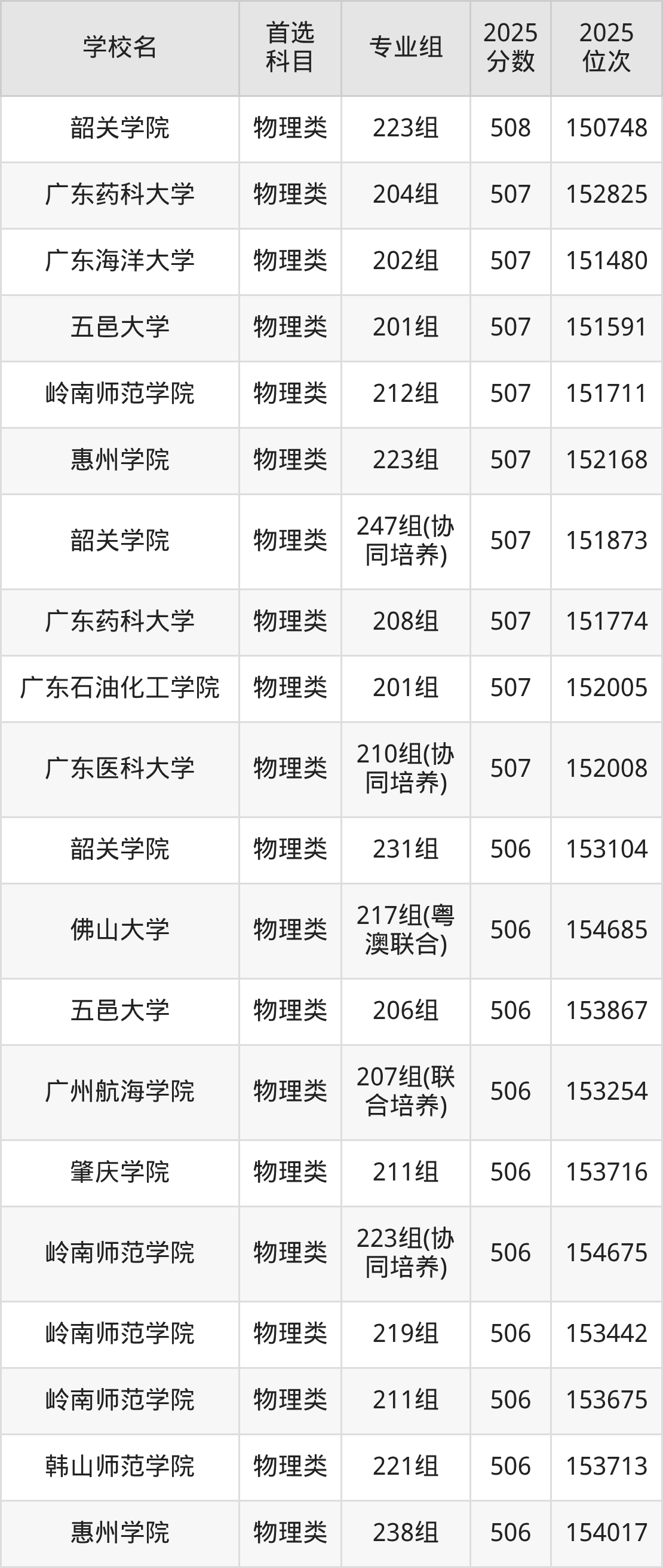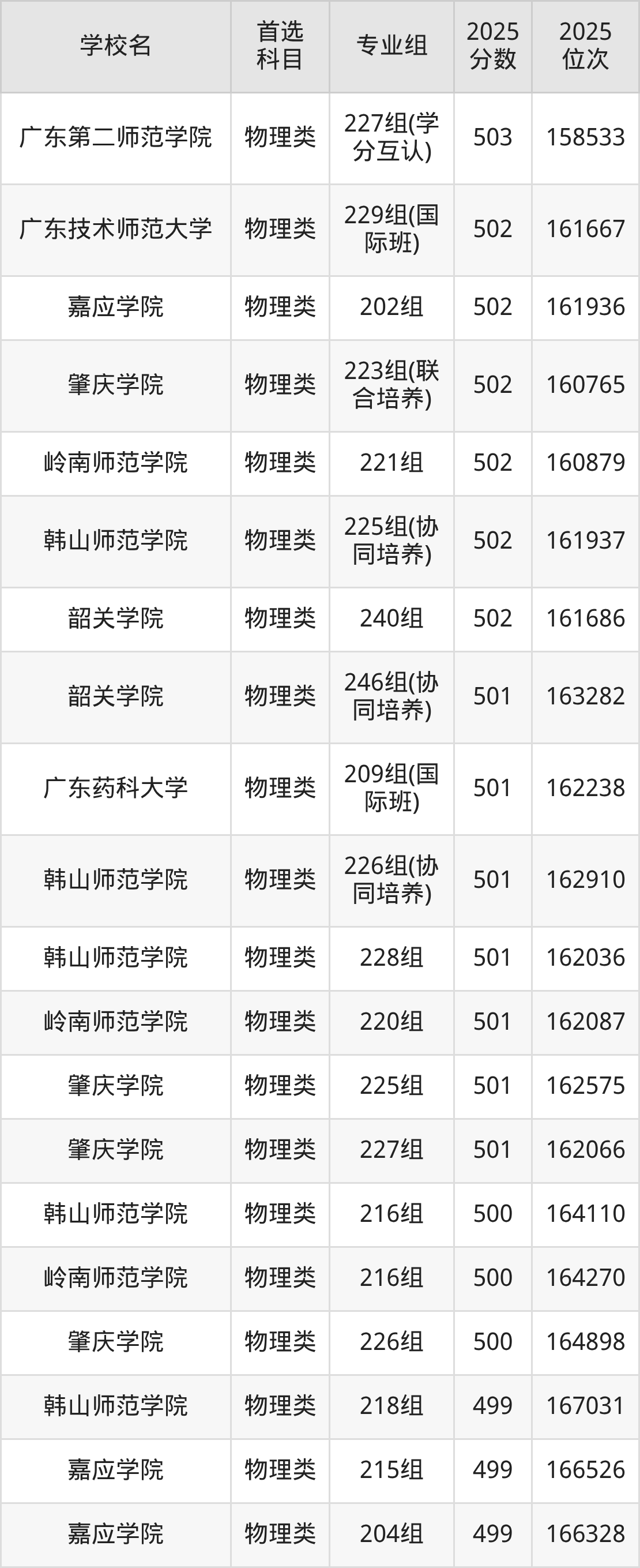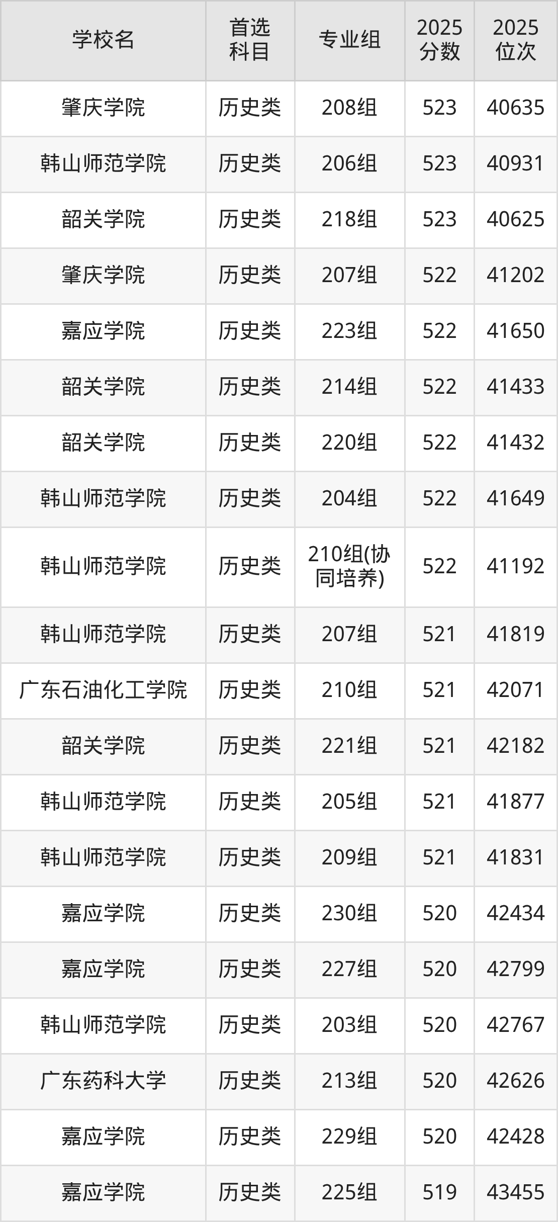 (1)韩山师范学院212组(联合培养):502分、56071名;