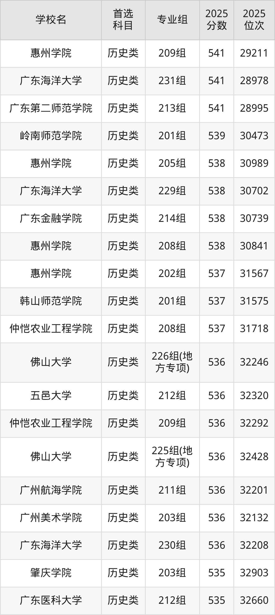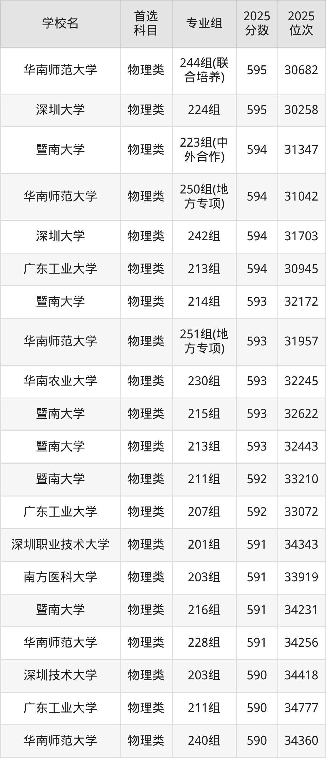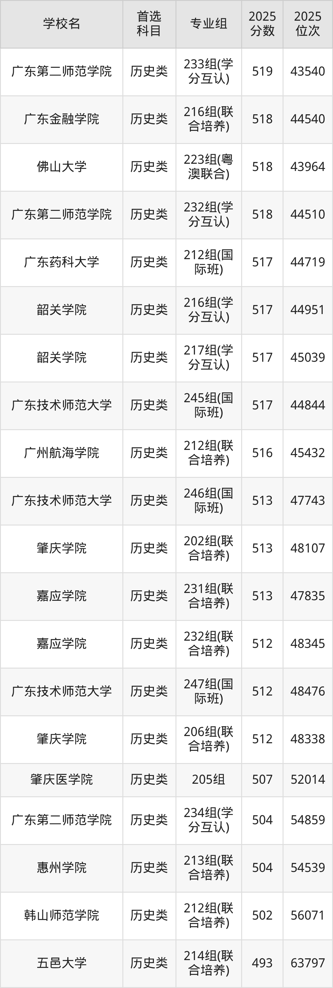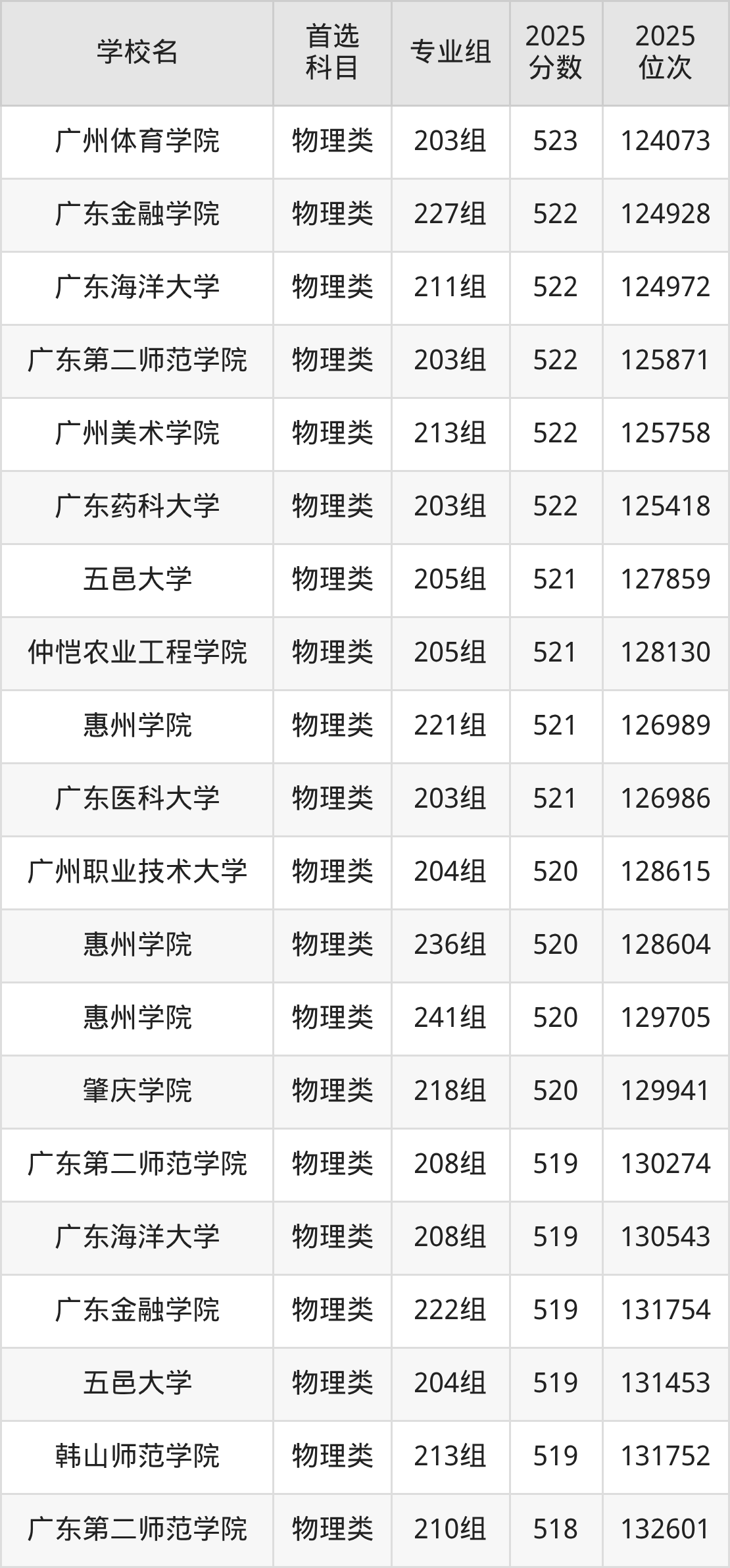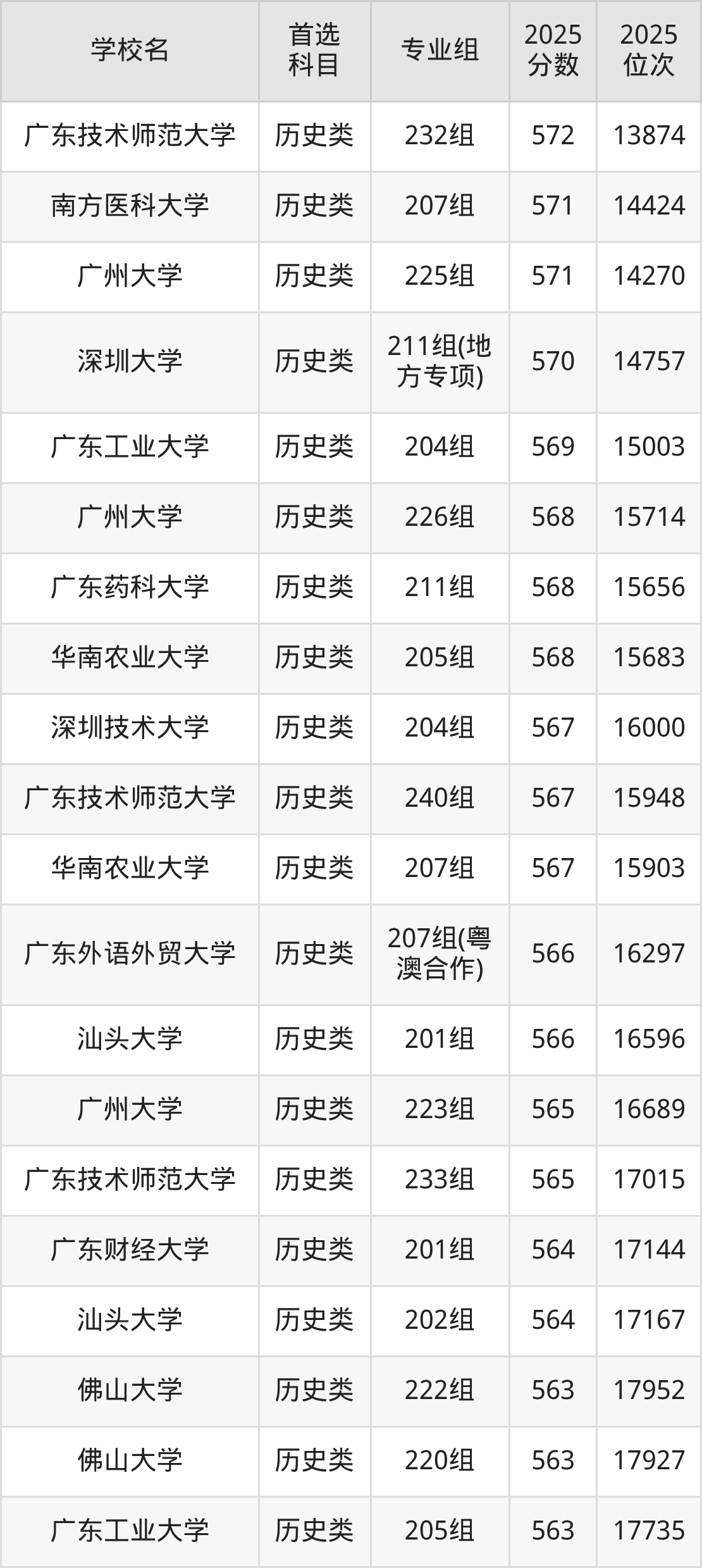 2025年广东省公办本科录取分数线一览表完整版,请查看: