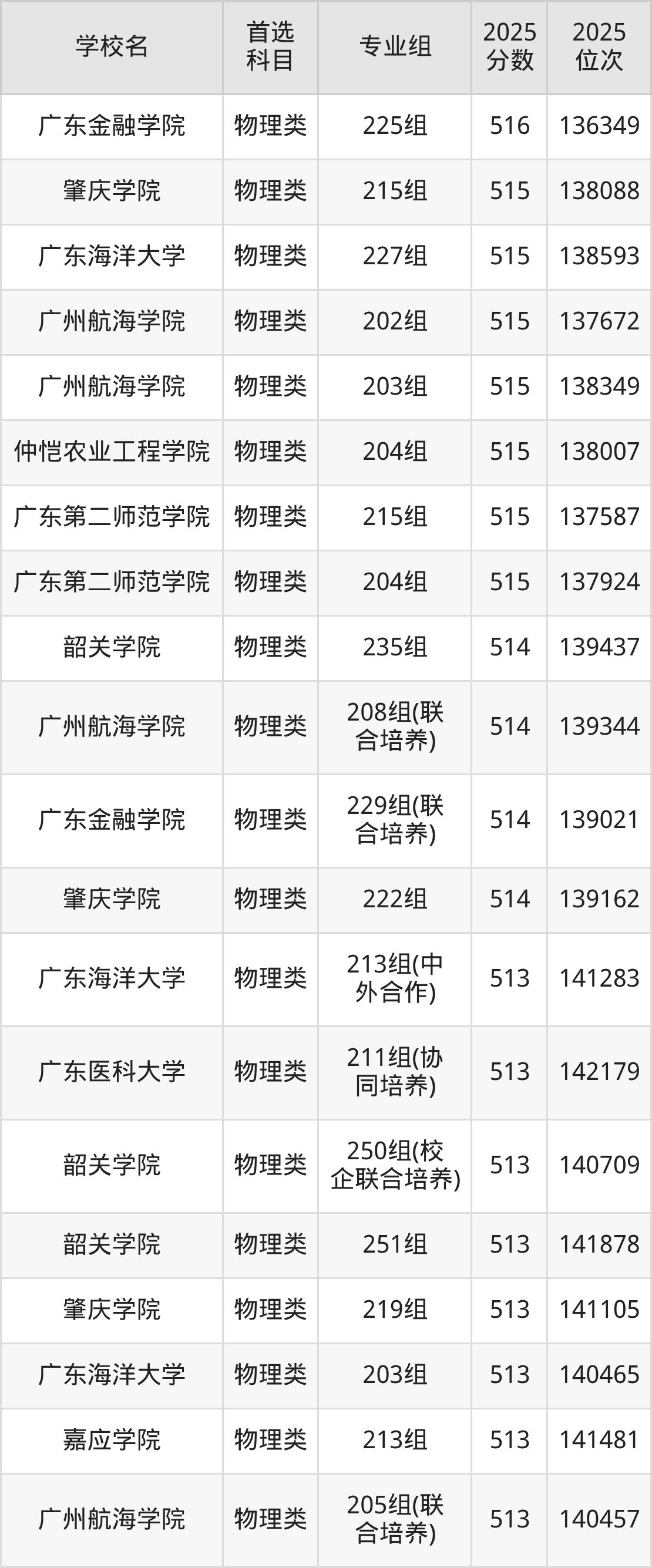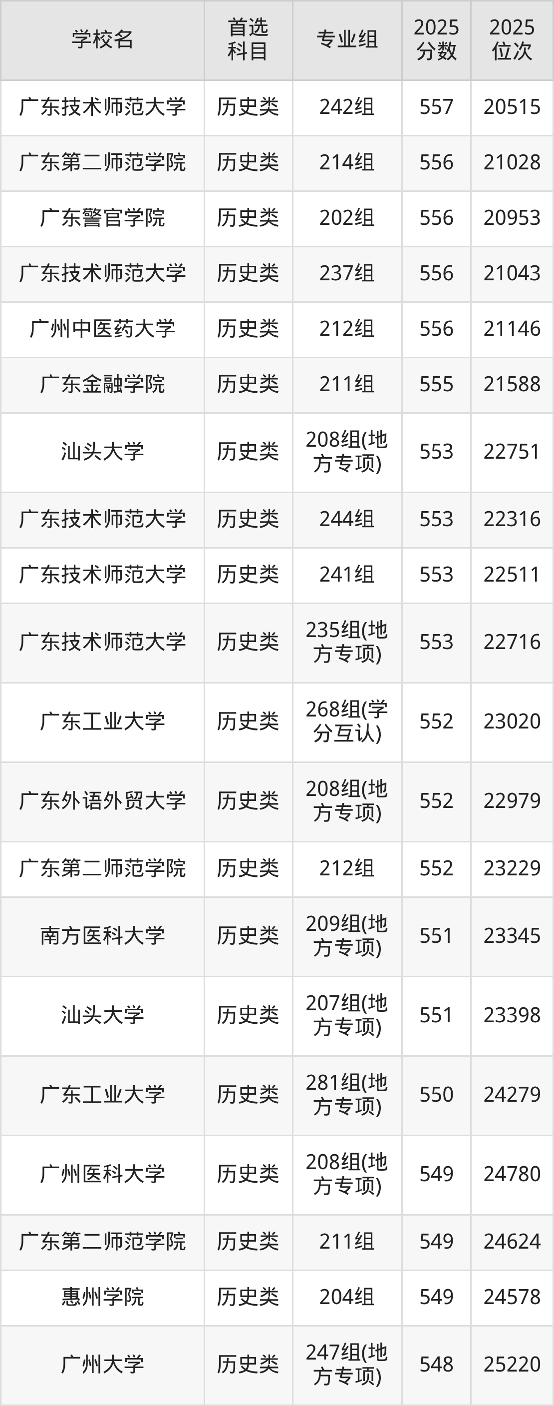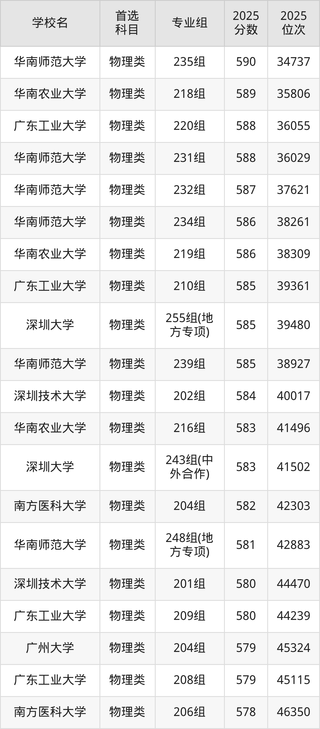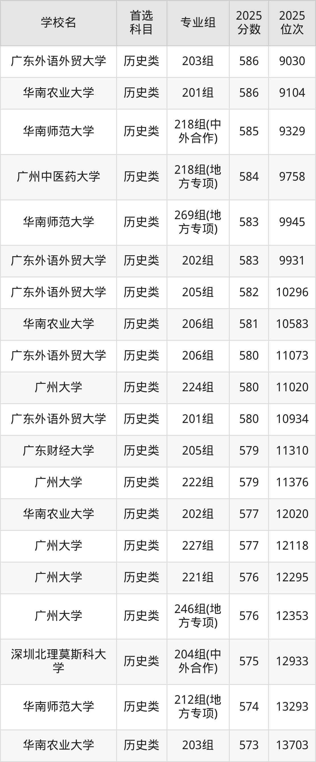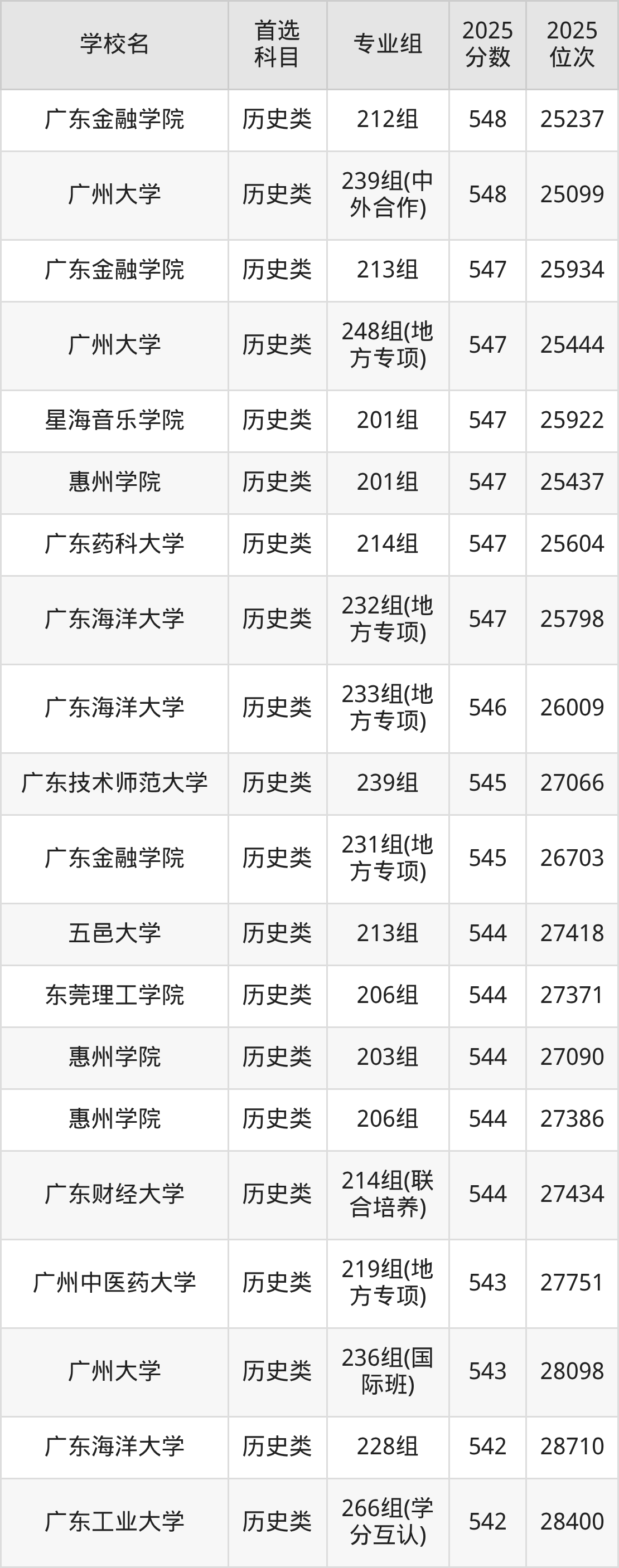 2025年广东省公办本科录取分数线一览表完整版,请查看: