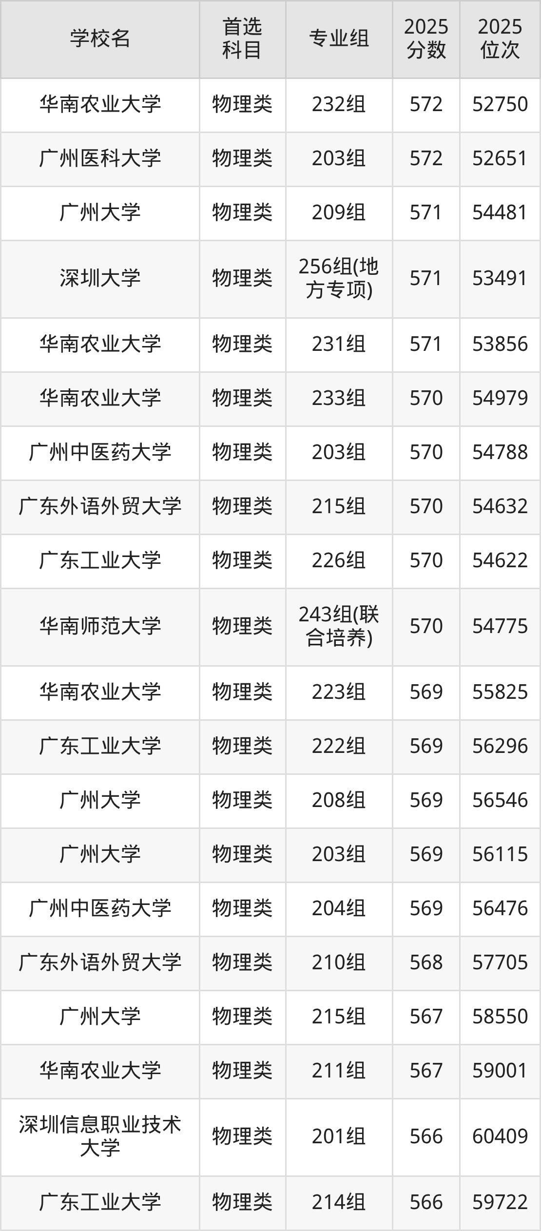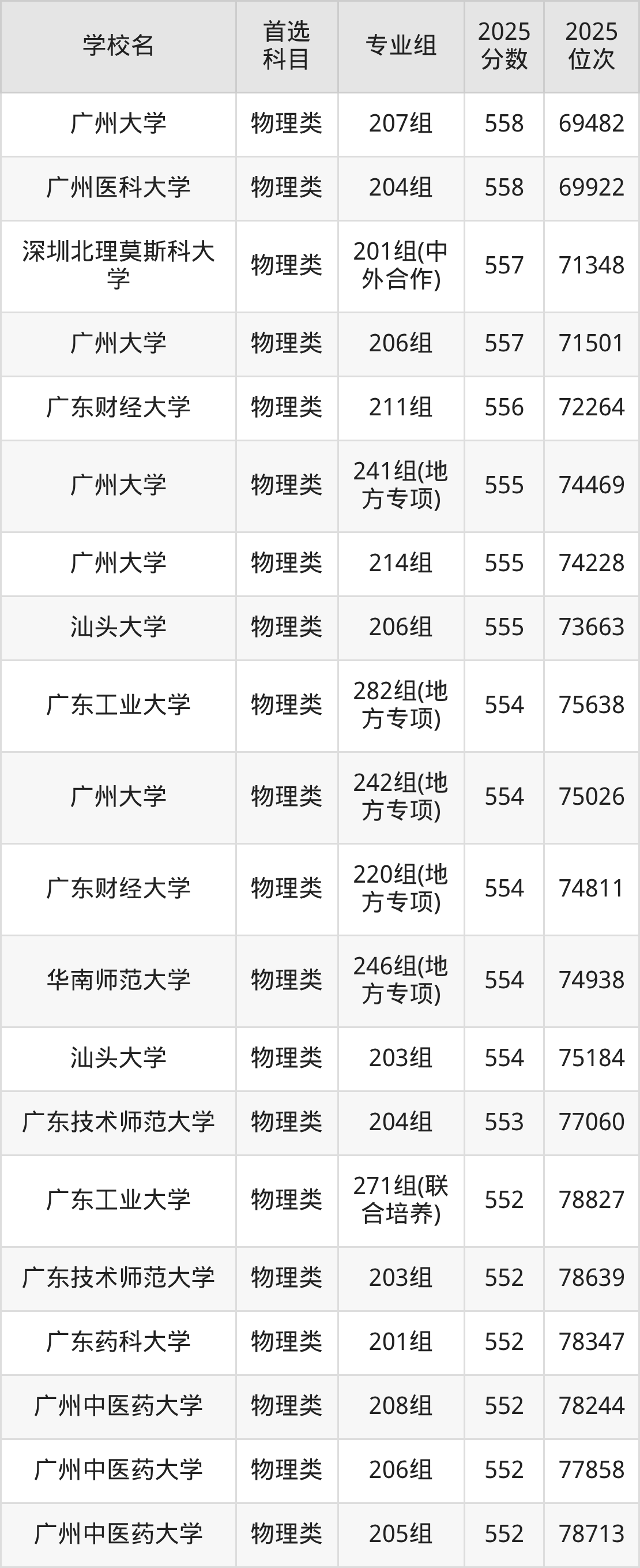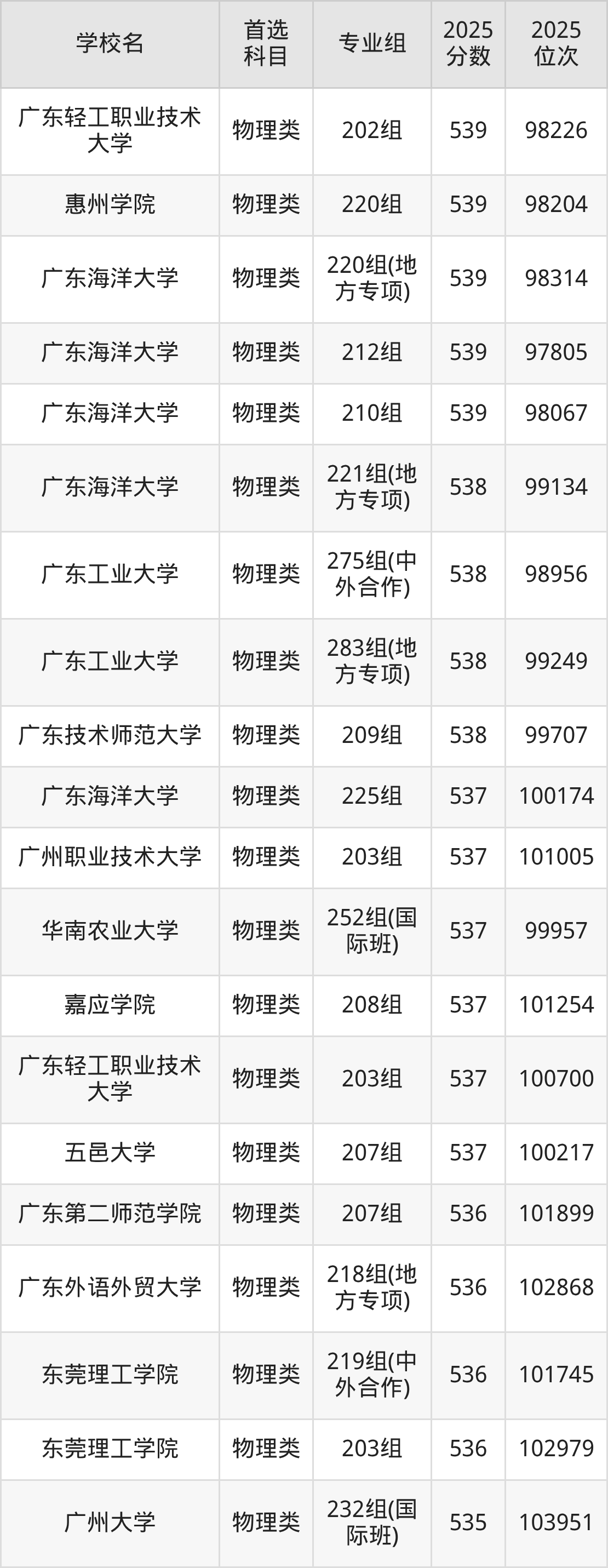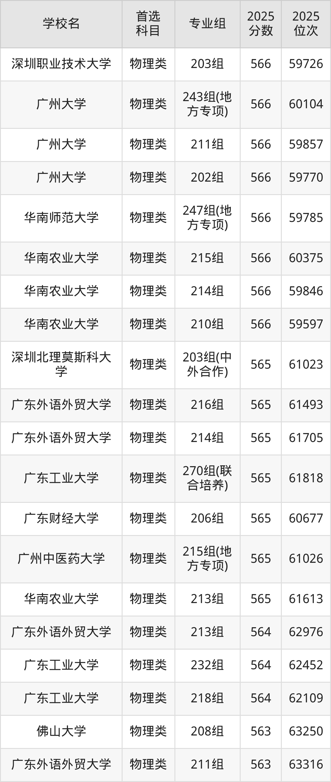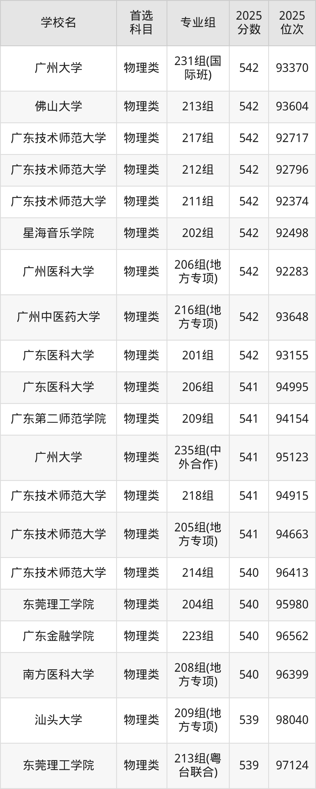 2025年广东省公办本科录取分数线一览表完整版,请查看: