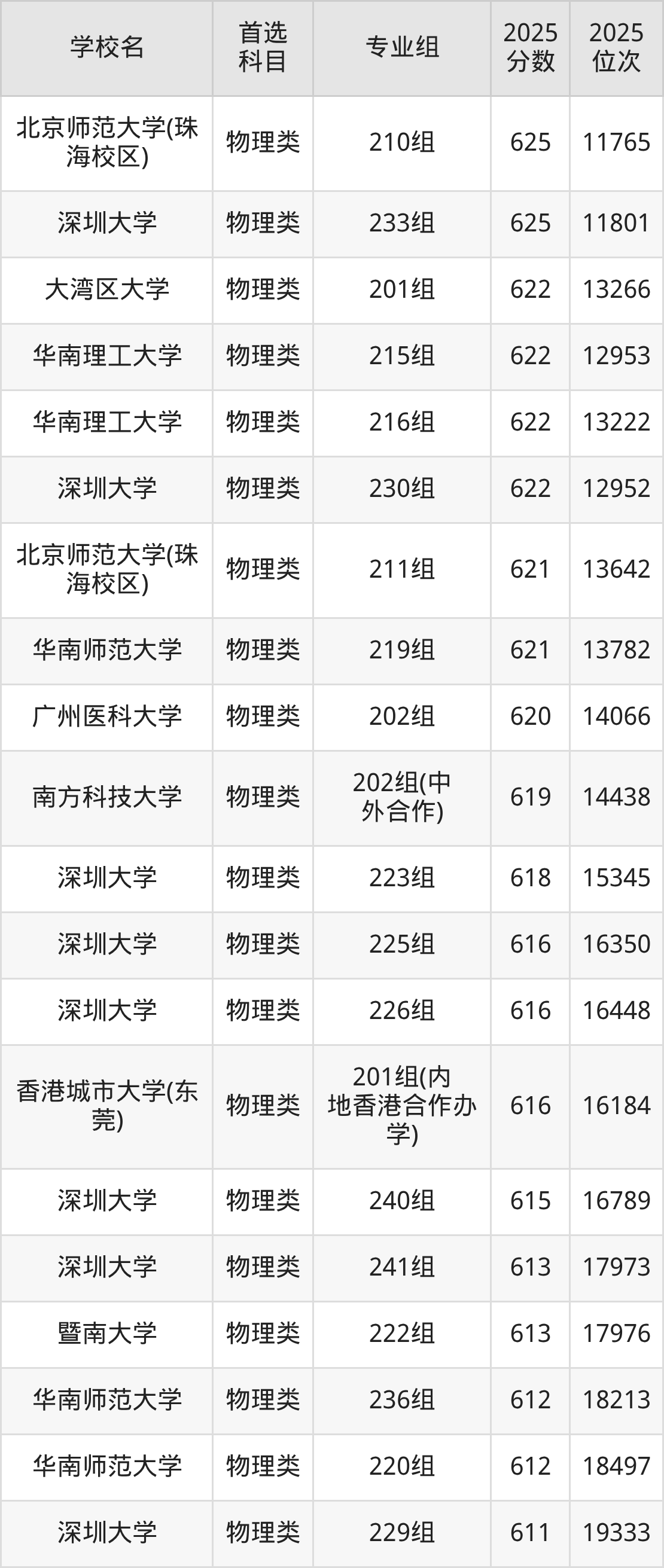 (2)南方科技大学201组:652分、3232名;