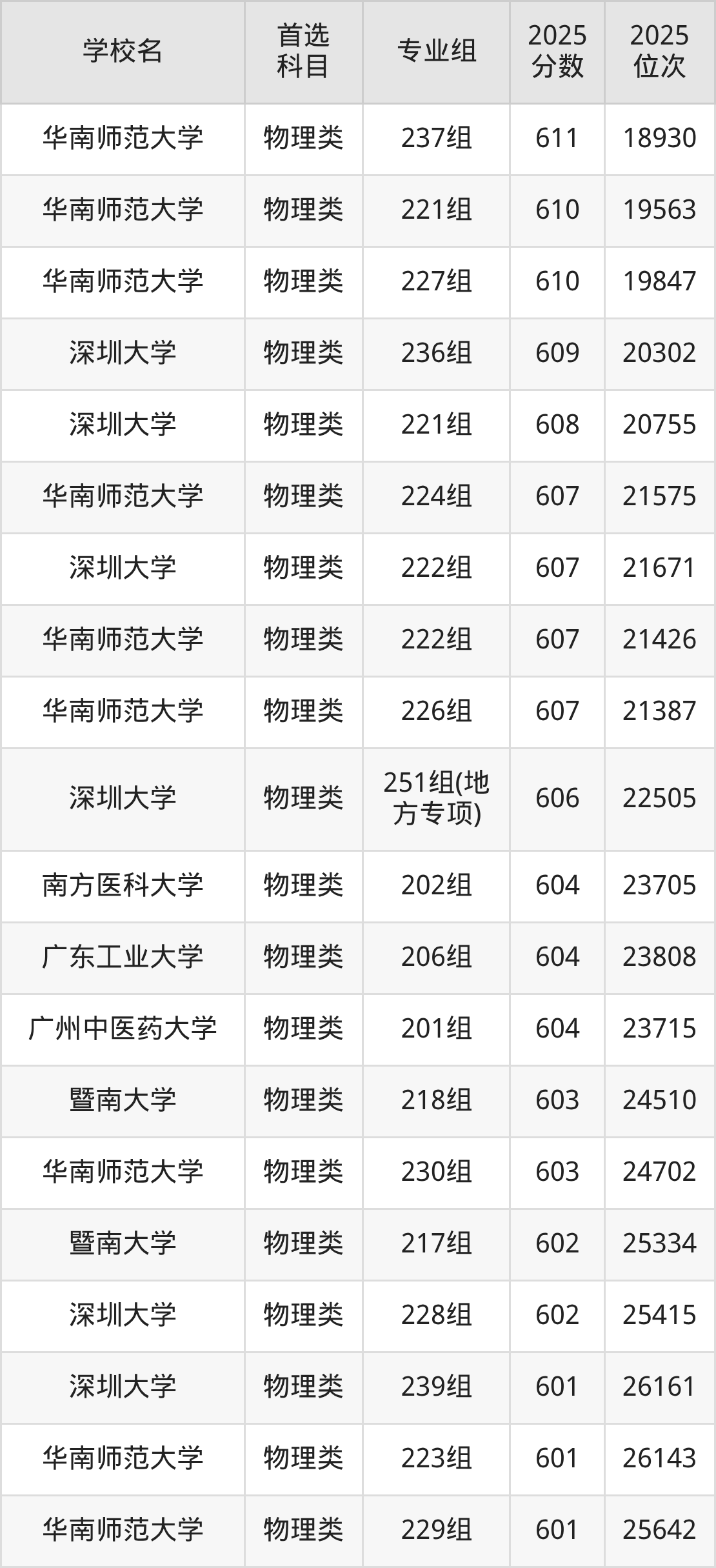 (4)南方医科大学201组:650分、3606名;