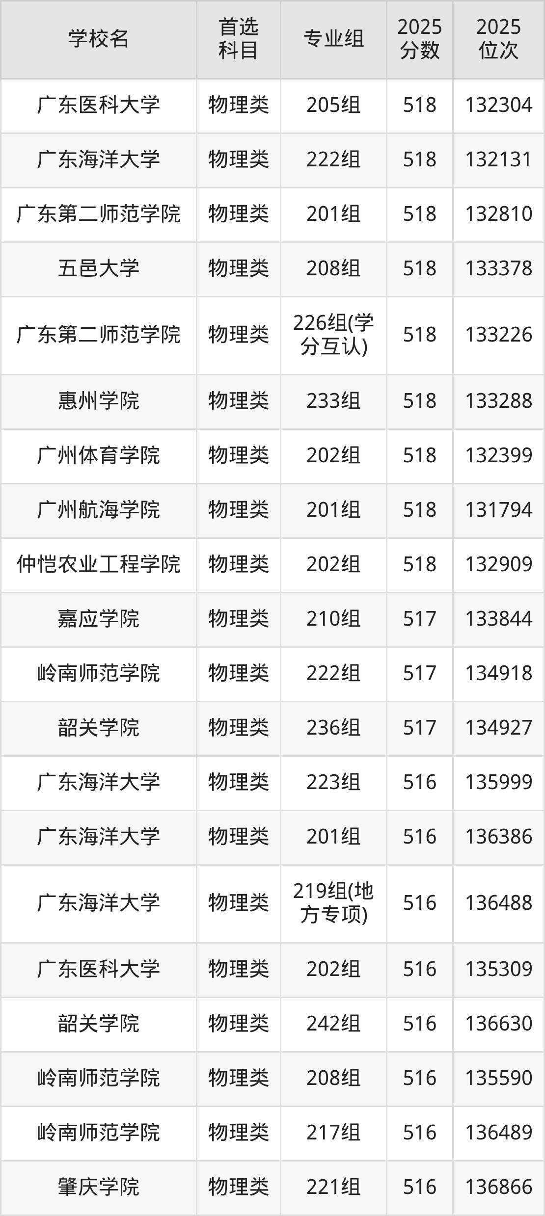 (5)广东技术师范大学248组(少数民族班):424分、133860名;
