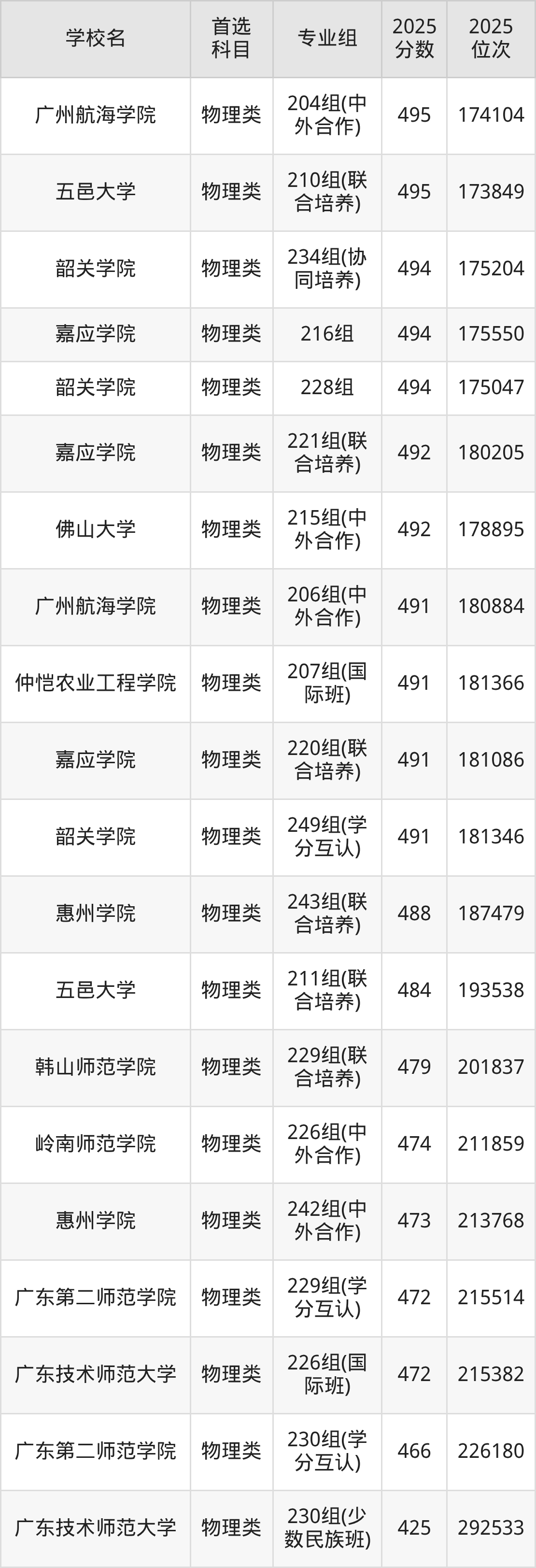 (4)广东技术师范大学230组(少数民族班):425分、292533名;