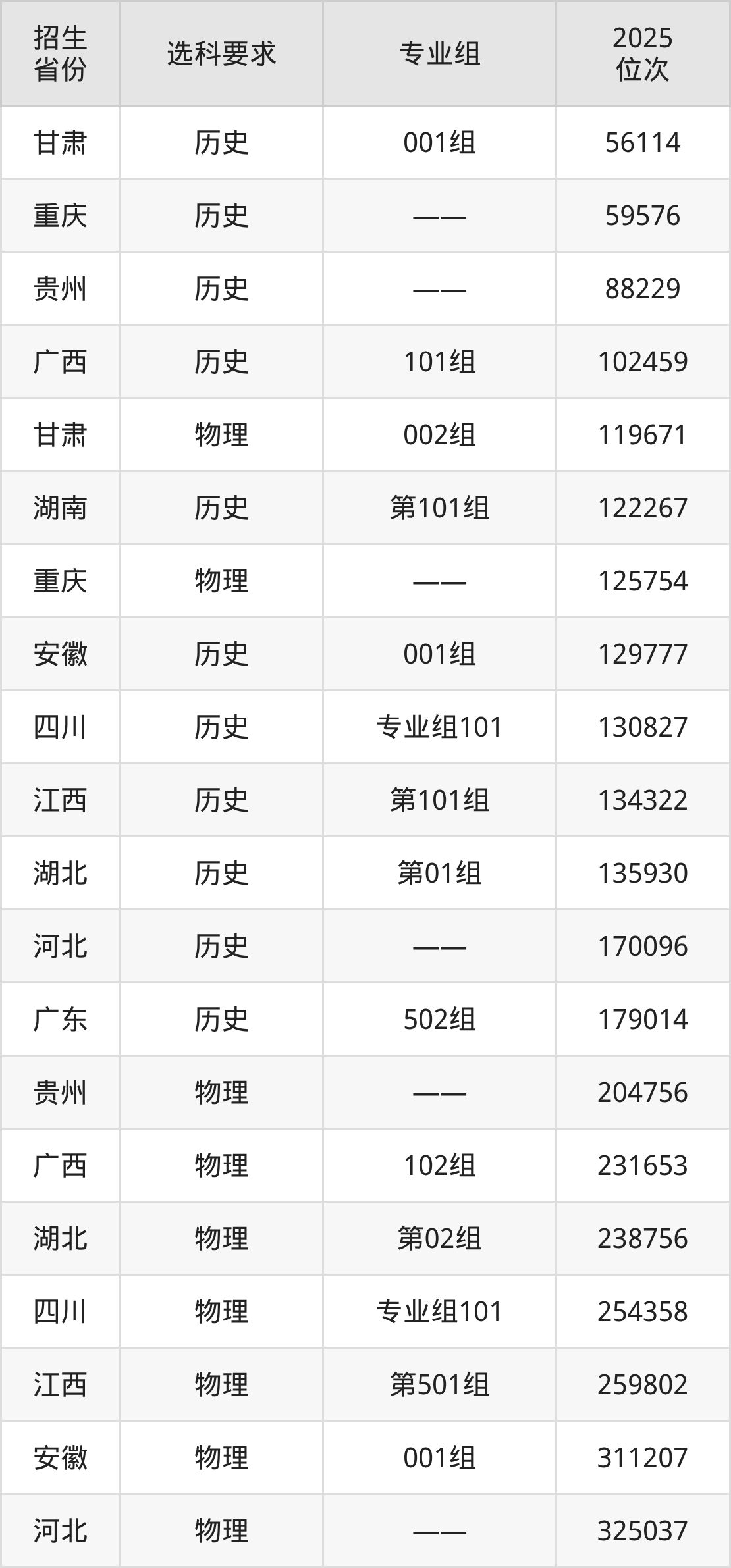 六盘水幼儿师范高等专科学校2025年在全国各省的位次差异较大,最高位次是56114位(甘肃历史类)、最低位次是604968位(山东)。各省具体位次请看下图: