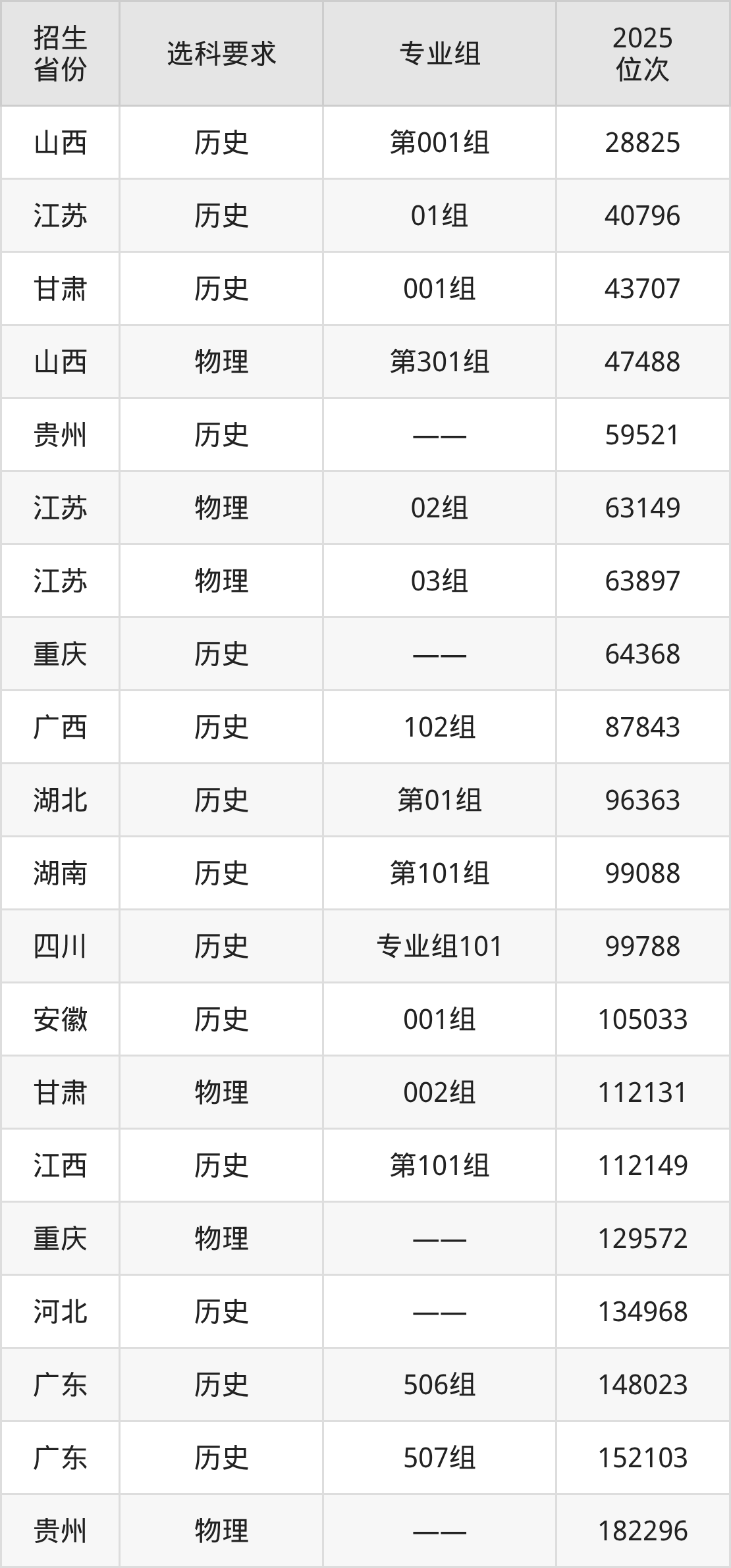 赣州职业技术学院2025年在全国各省的位次差异较大,最高位次是28825位(山西历史类)、最低位次是583378位(山东)。各省具体位次请看下图: