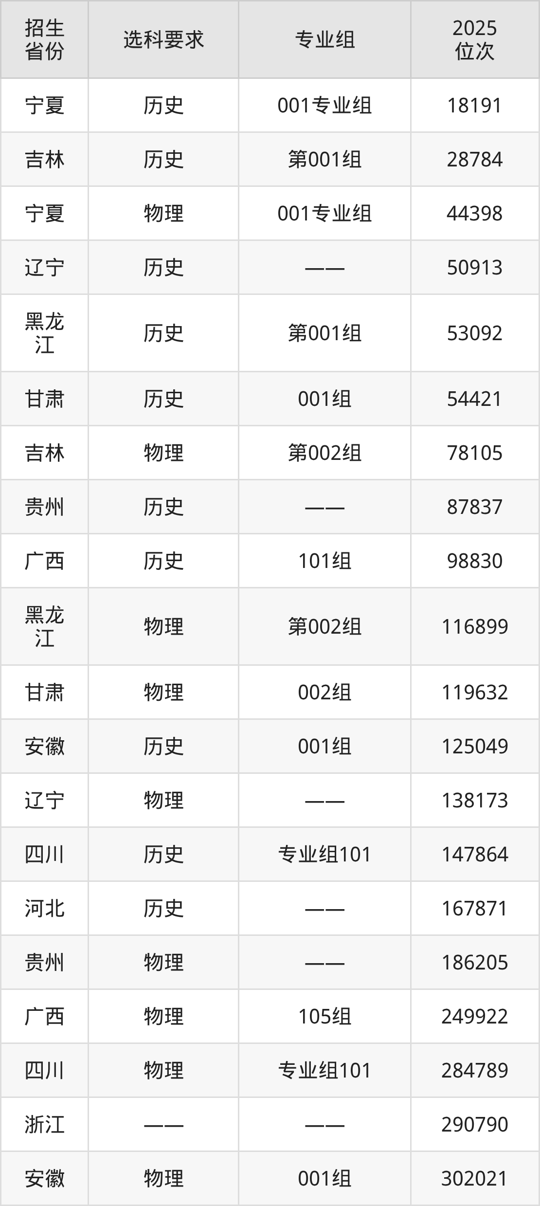 宝鸡三和职业学院2025年在全国各省的位次差异较大,最高位次是18191位(宁夏历史类)、最低位次是579233位(山东)。各省具体位次请看下图: