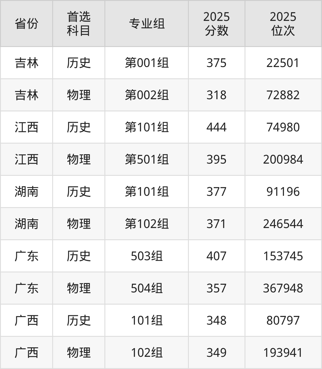 因为大部分地区目前只公布了院校(专业组)分数线,为了方便2026年考生参考,本文就整理出湖南现代物流职业技术学院在全国各省不同科类的最低分: