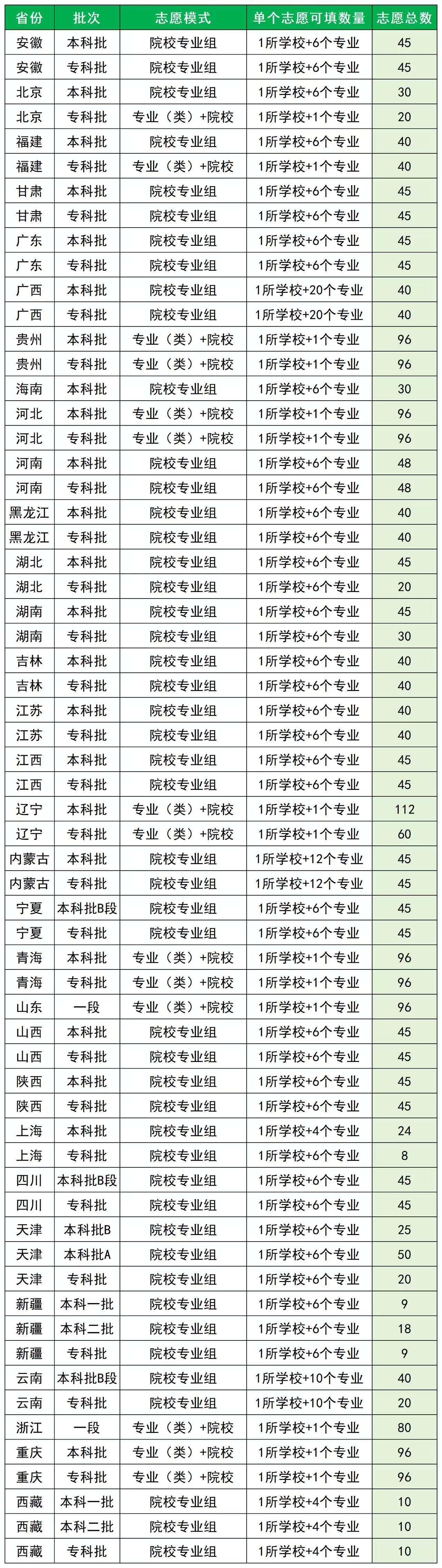 在此模式下,1个“专业(类)+学校”为1个志愿,只要同学们的选考科目符合高校的专业招生(类)的要求,就可以直接填报对应的专业。