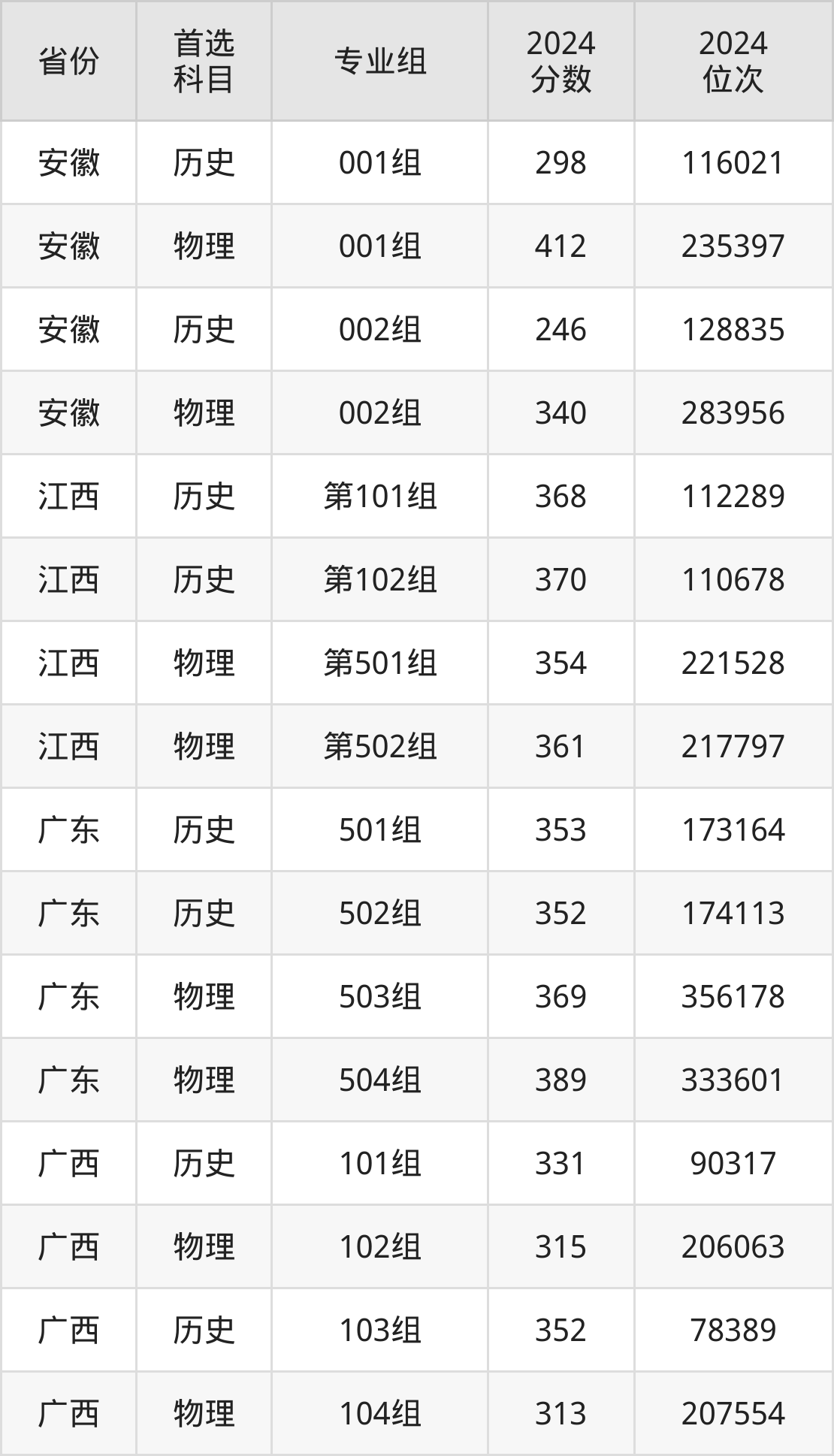 1.安徽:历史类246分、128835位,物理类340分、283956位