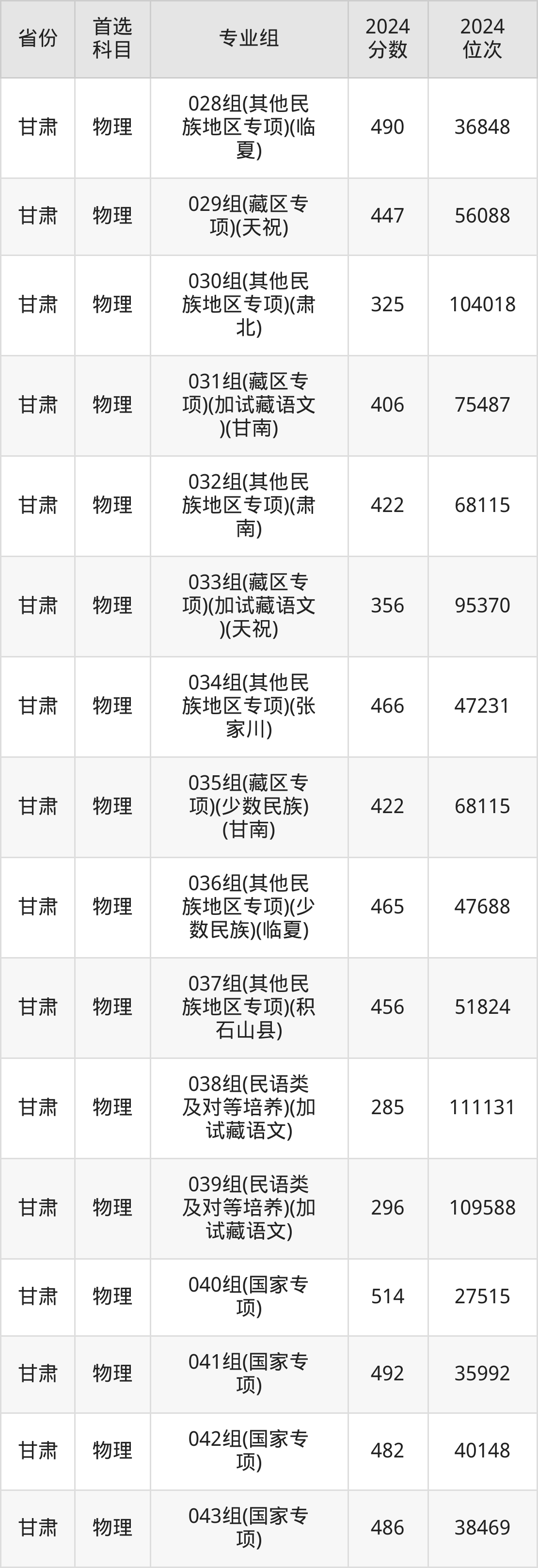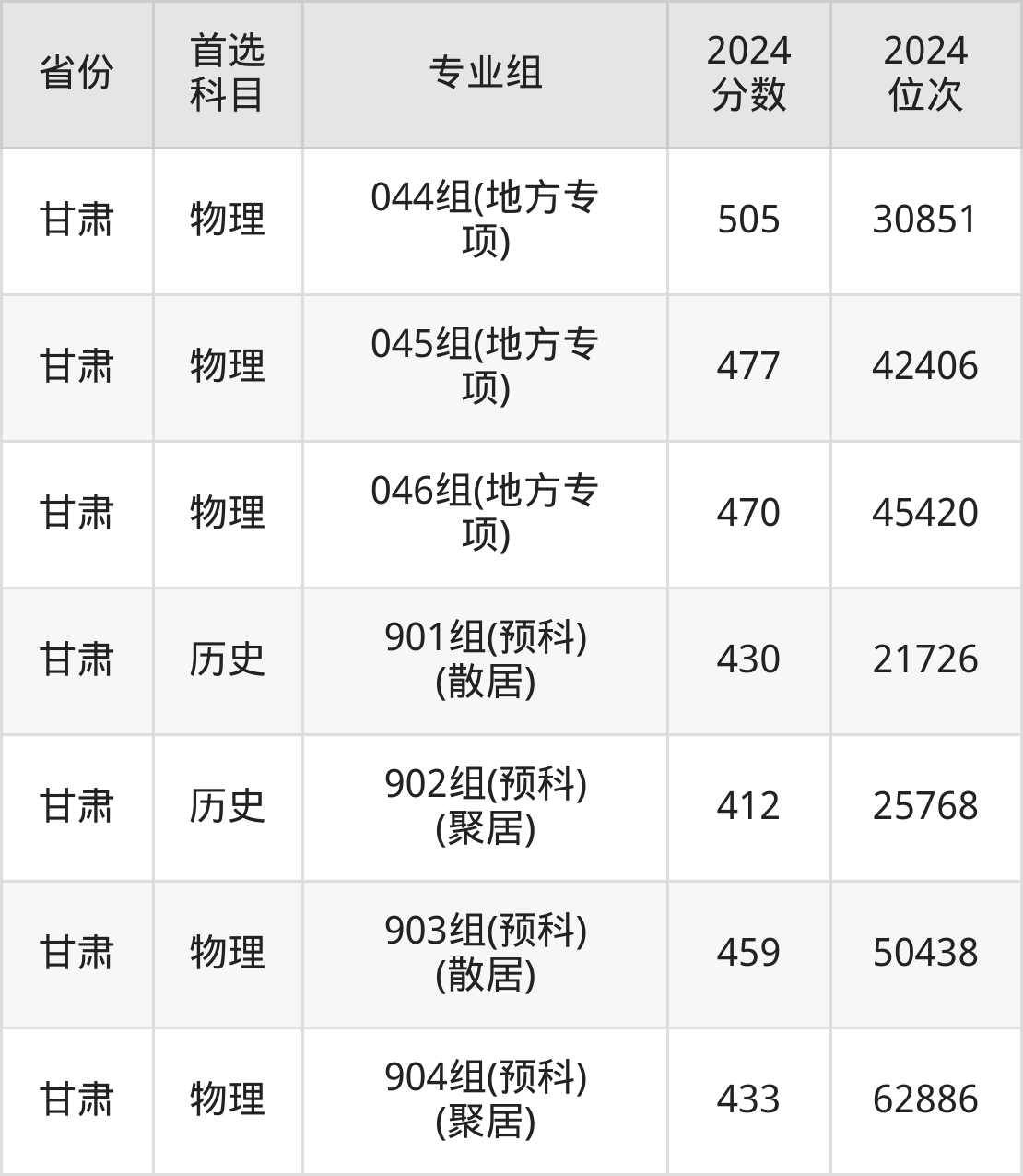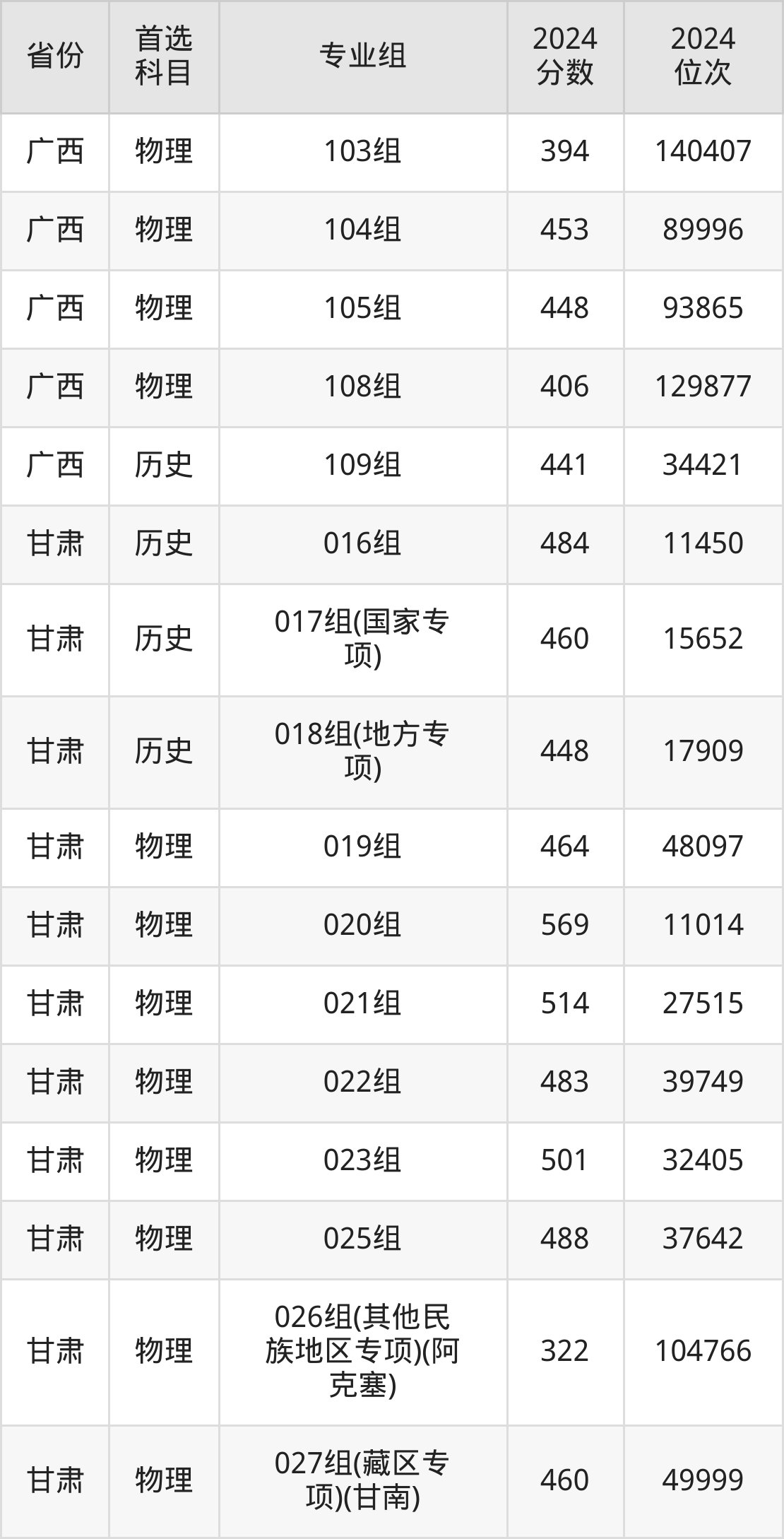 因为大部分地区目前只公布了院校(专业组)分数线,为了方便2025年考生参考,本文就整理出甘肃中医药大学在全国各省不同科类的最低分: