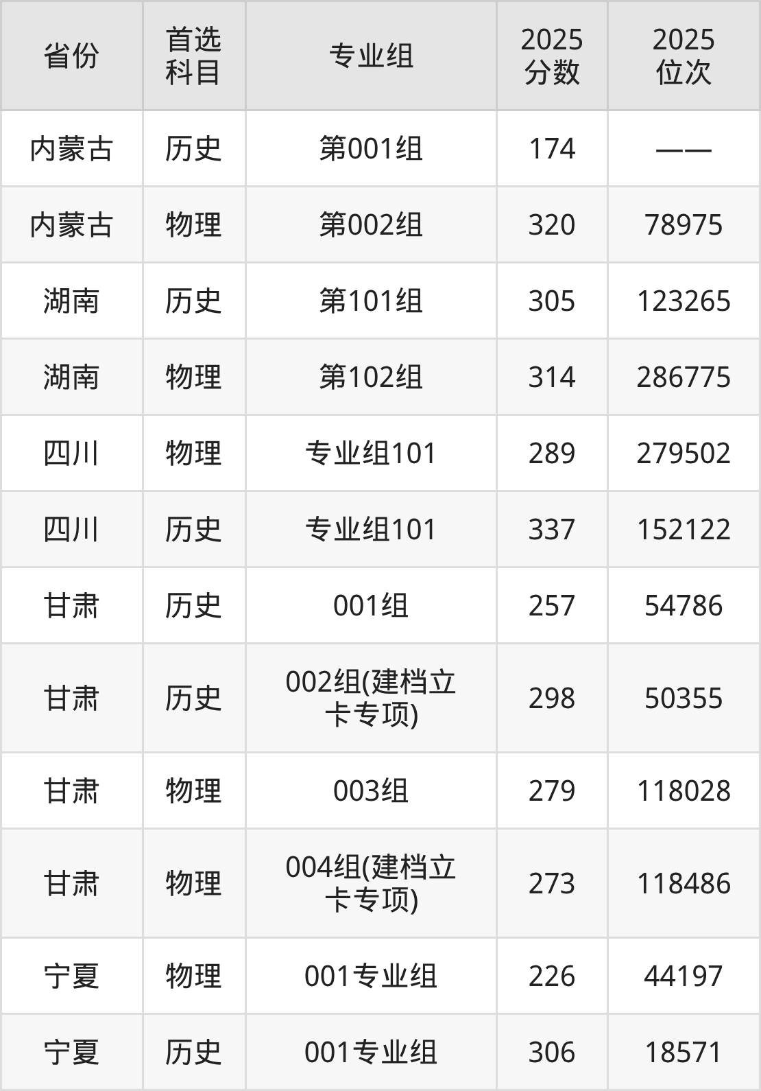 2.内蒙古:物理类320分、78975位,历史类174分