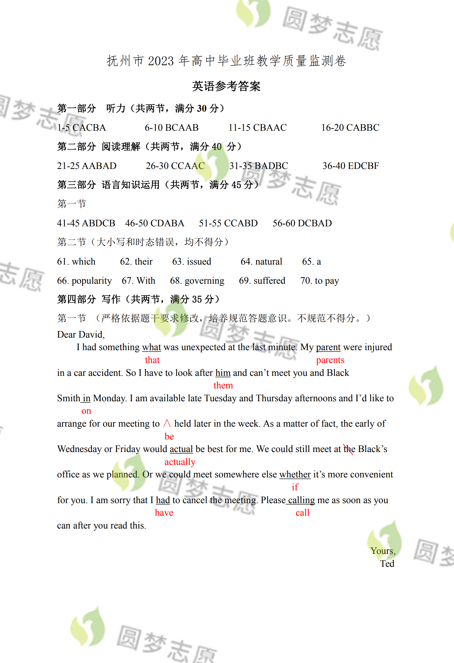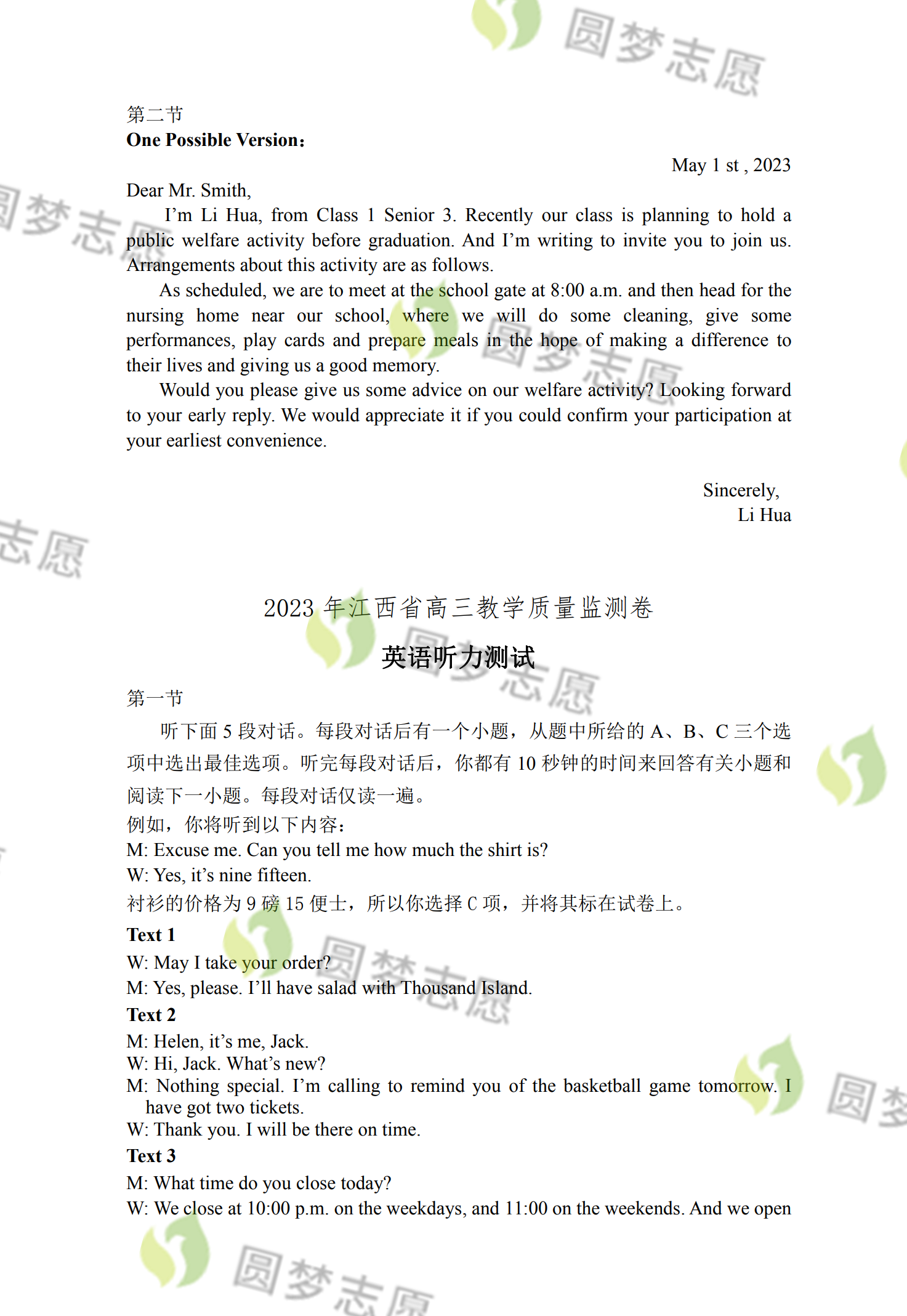 加入圆梦志愿线上试卷交流,第一时间获取江西联考试卷及答案,方式在文末。