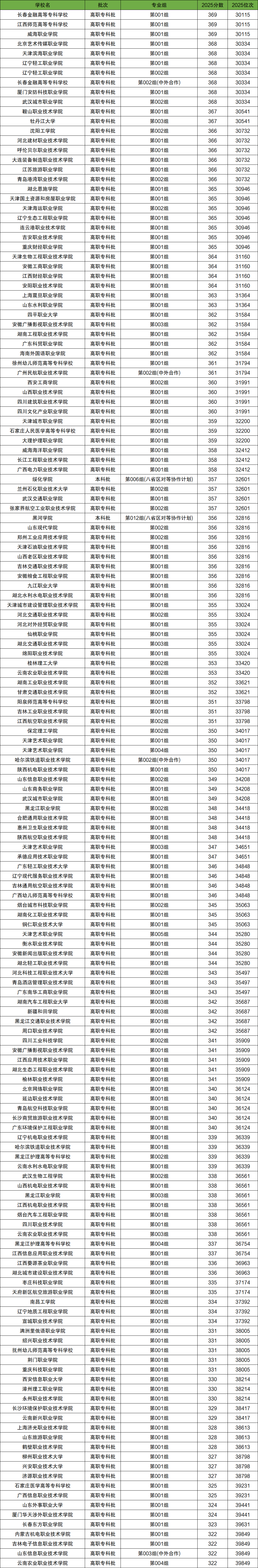 黑龙江省高考3万名~4万名中收分最高的是长春金融高等专科学校、江西师范高等专科学校、威海职业学院,在黑龙江省录取位次均为30115,对应分数均为369分。