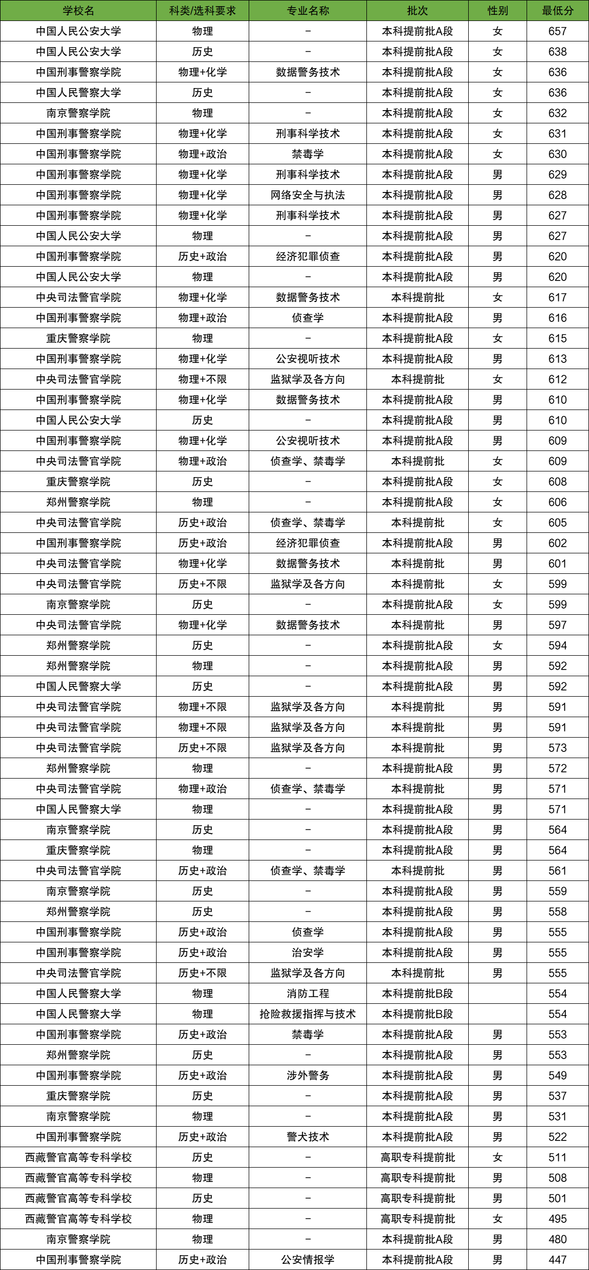8、西藏警官高等专科学校:历史类最低501分、物理类最低495分。