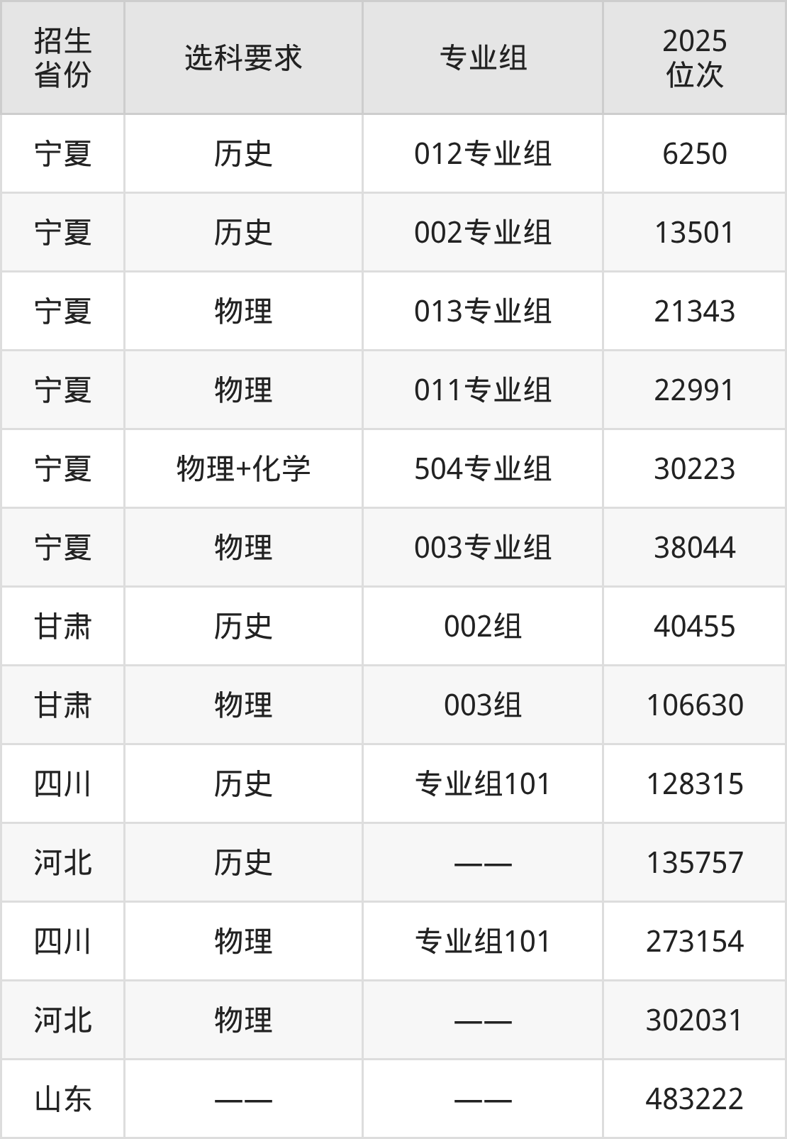 宁夏工商职业技术大学2025年在全国各省的位次差异较大,最高位次是6250位(宁夏历史类)、最低位次是483222位(山东)。各省具体位次请看下图: