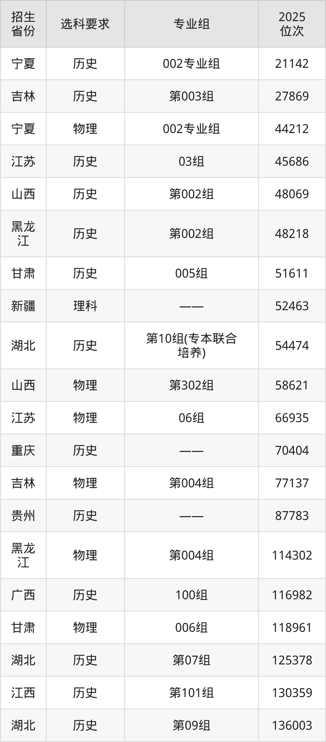 武昌职业学院2025年在全国各省的位次差异较大,最高位次是21142位(宁夏历史类)、最低位次是630468位(山东)。各省具体位次请看下图: